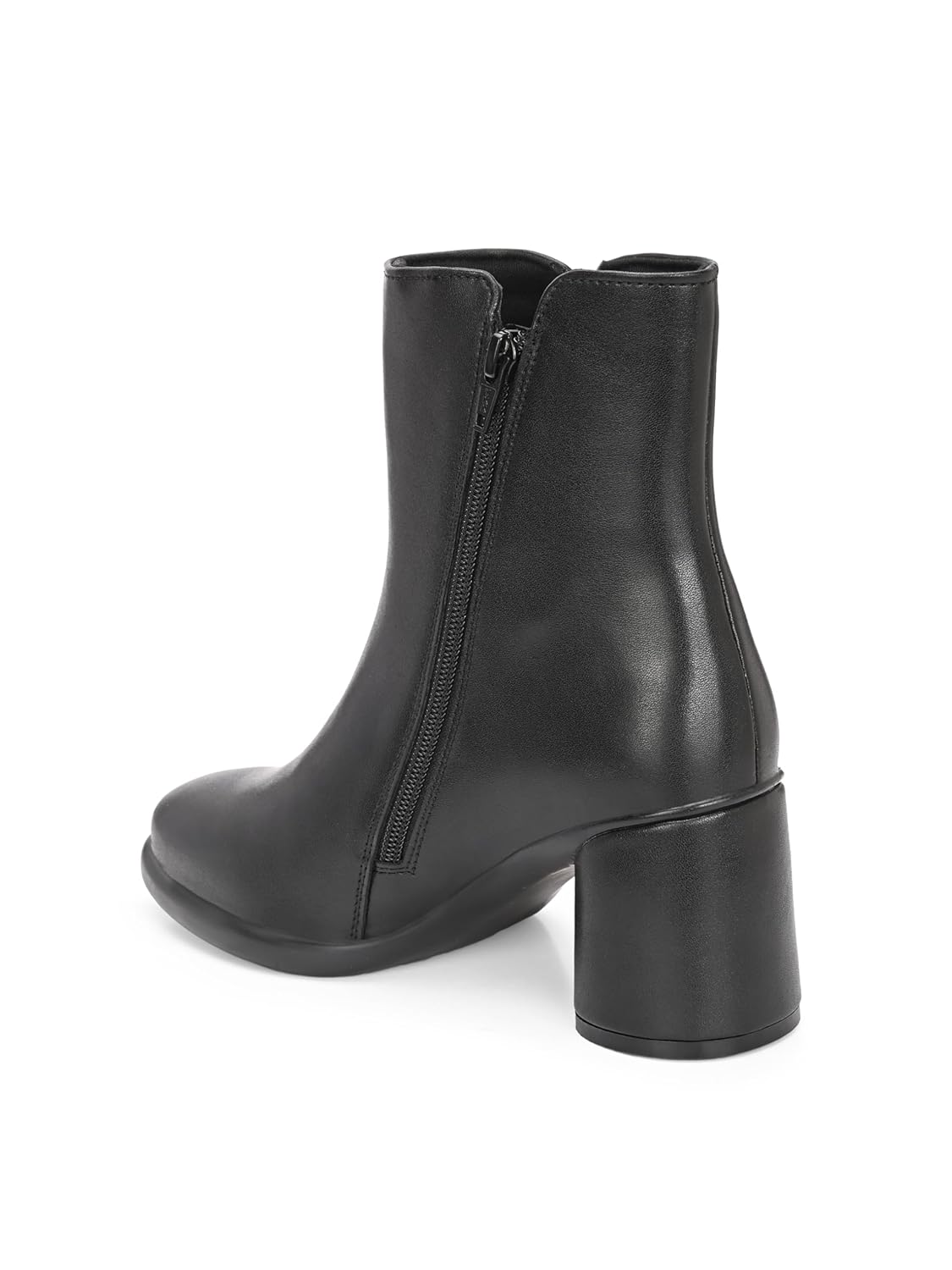 Black women vegan leather, high heel ankle boots with inside zip to wear easily. Fabric lining and memory foam insock for ultimate comfort.Heel height – 2.75 inches