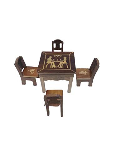 Deluxe Wood Handicrafts Cute Miniature Dinning Table | Furniture Doll House Dining Room Table | Role Pretend Play Wooden Toy for Kids-Brown