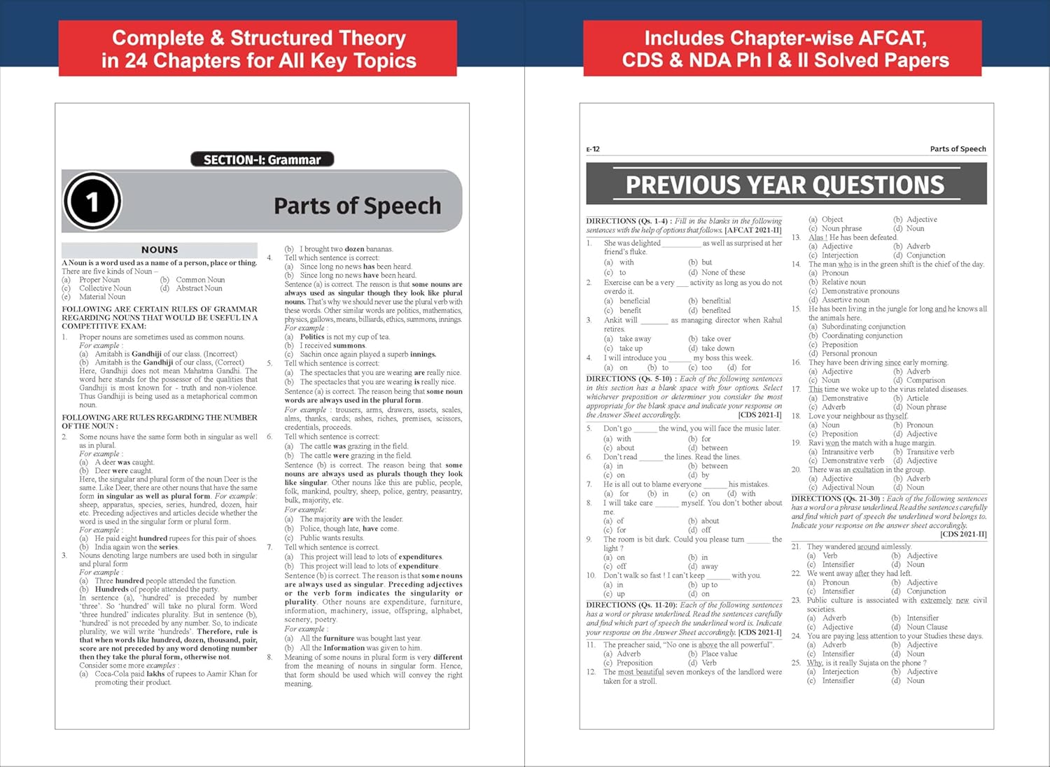 * The Book includes Chapter-wise AFCAT, CDS & NDA Phase 1 & 2 Solved Papers 2021 – 2025.