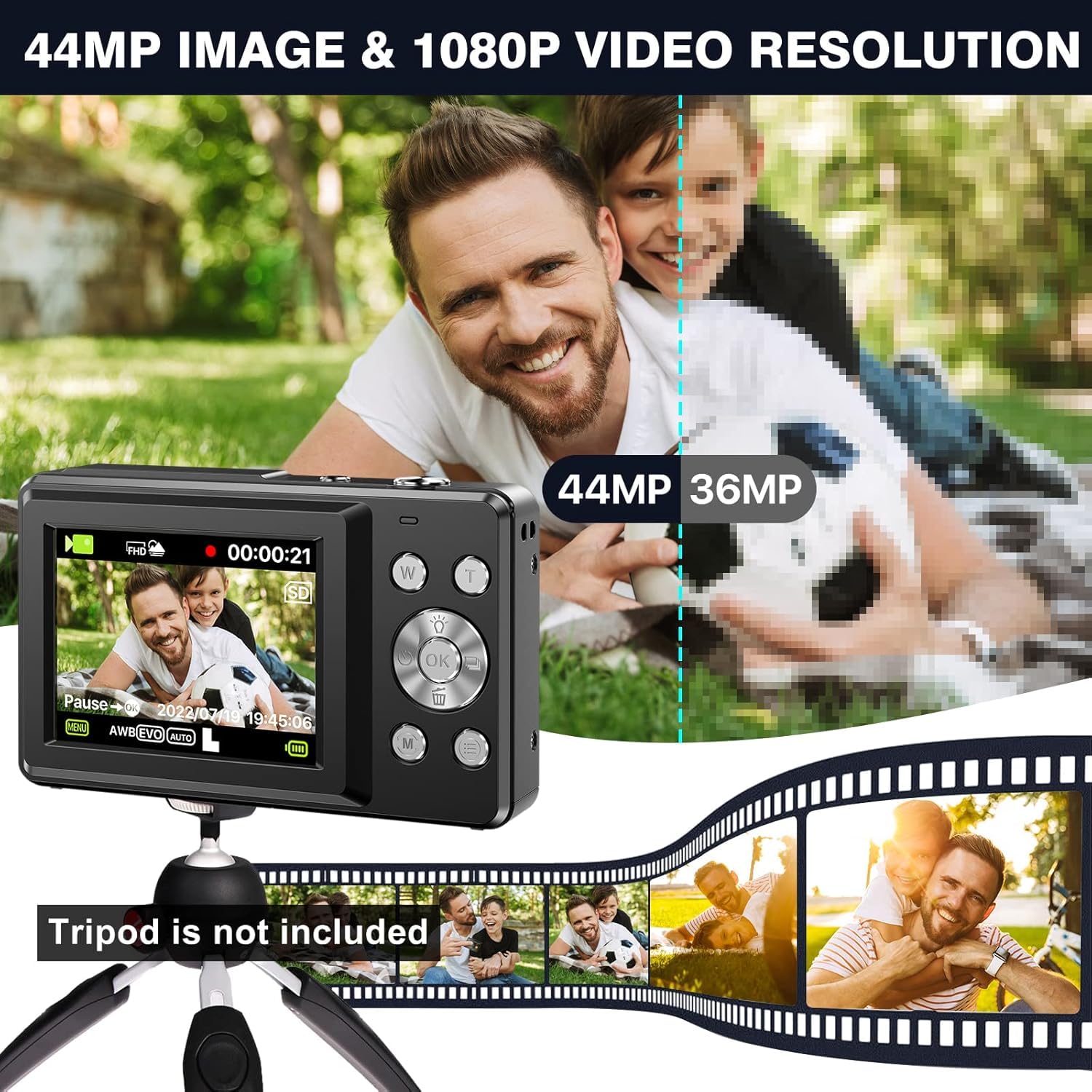 This digital camera for kids is equipped with a high-level CMOS Sensor and anti-shake function, which helps to capture vivid clear 44MP Images and record stable smooth FHD 1080P resolution videos. It’s a meaningful Christmas or birthday gift camera for kids to cultivate their interest in photography, experience the lovely life, and leave funny memorable moments with family or friends.