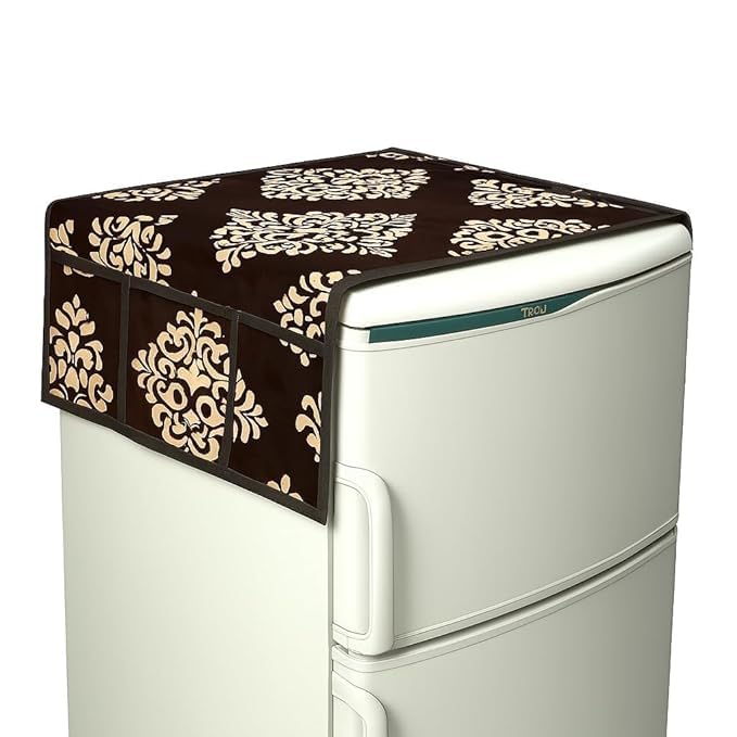 Double Door or Single Door Fridge Cover | Fridge Combo Set of 1 Fridge Top Cover, 2 Handle Covers and 4 Fridge Mats | Refrigerator Cover | Damask Print