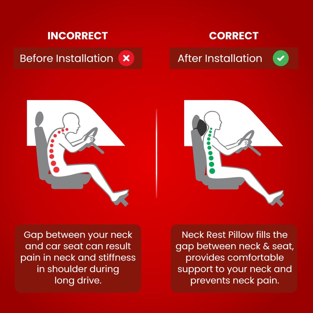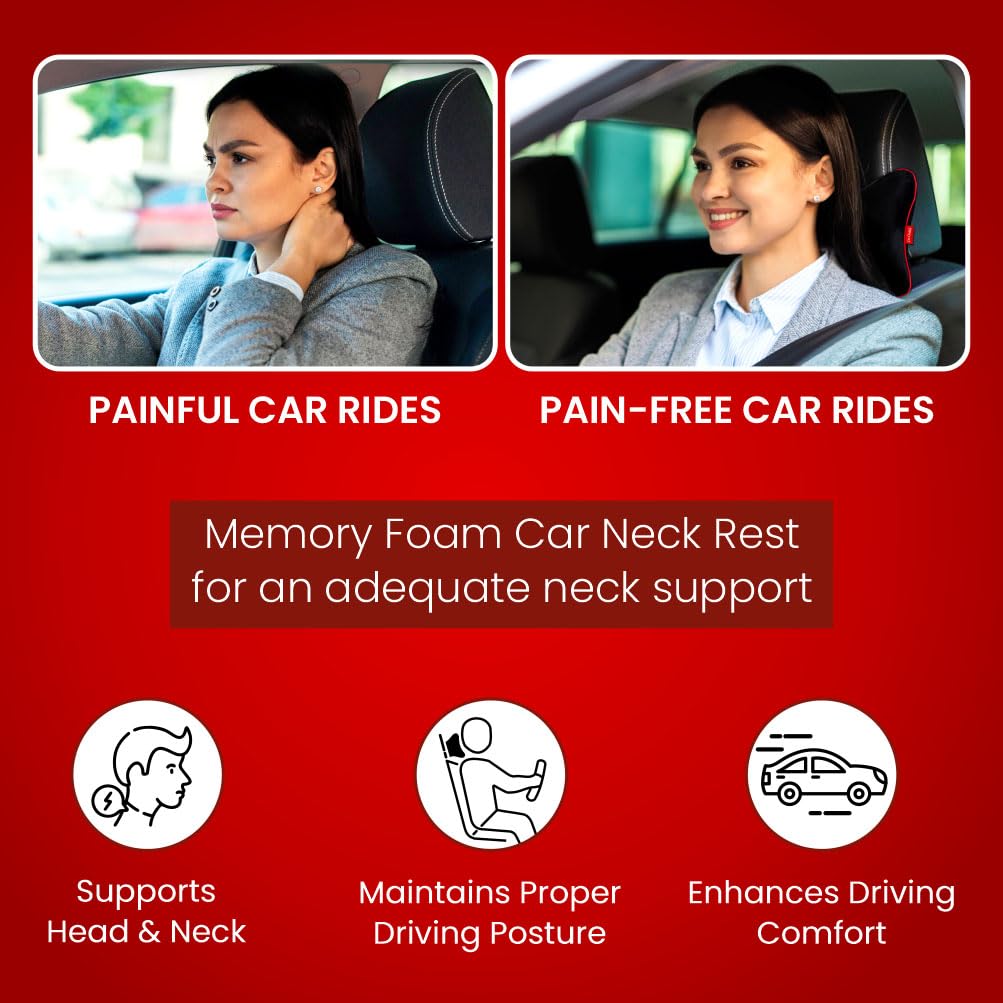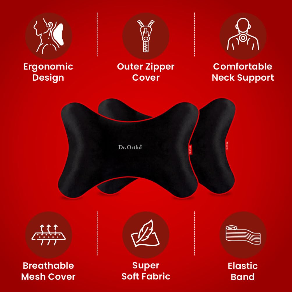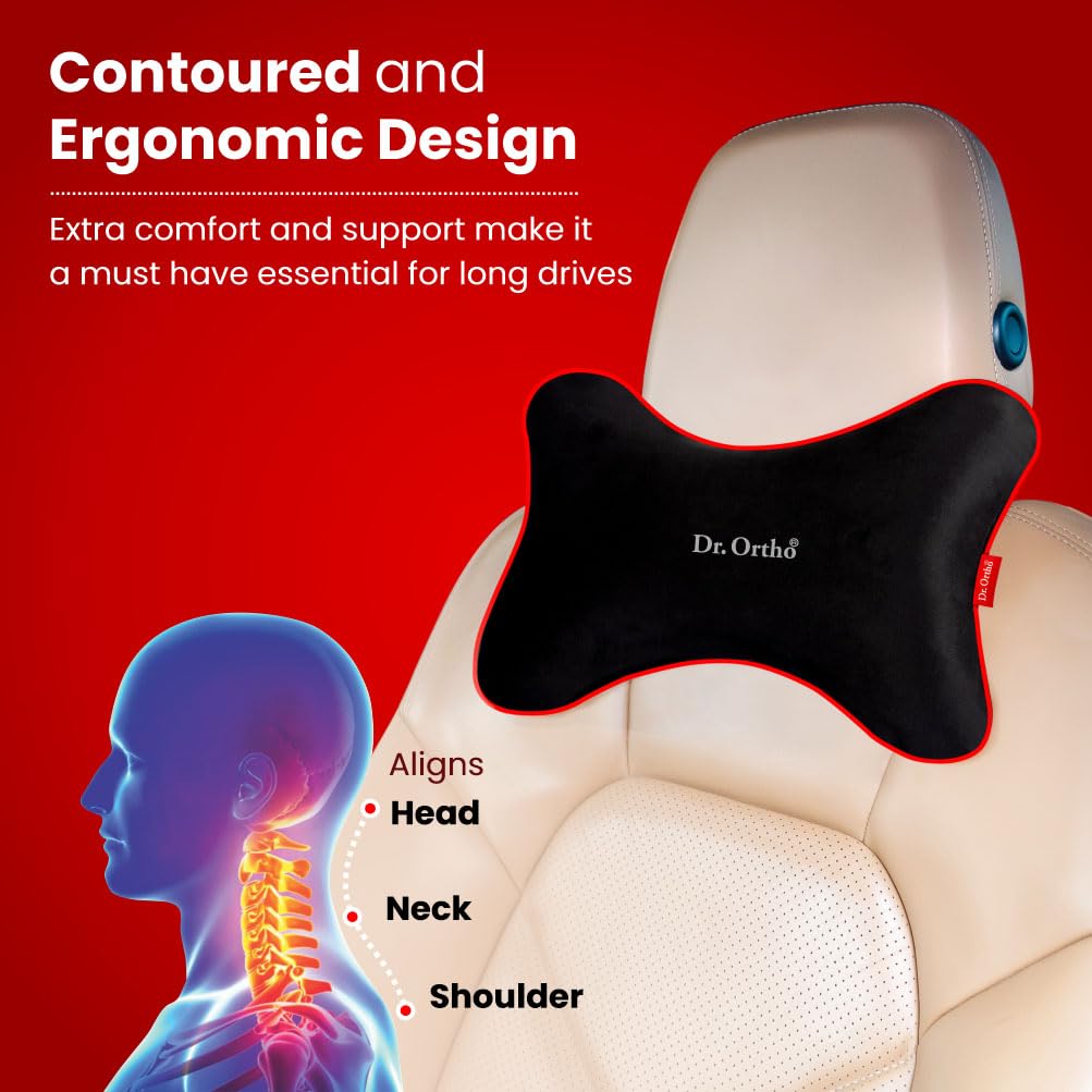 Dr.Ortho Orthopaedic Car Neck Rest Cushion Pillows, Memory Foam Car Seat Head Rest Pillow for Neck and Cervical, Support Relieves Pain & Muscle, Ultrasoft Pillow for Comfortable Car Rides