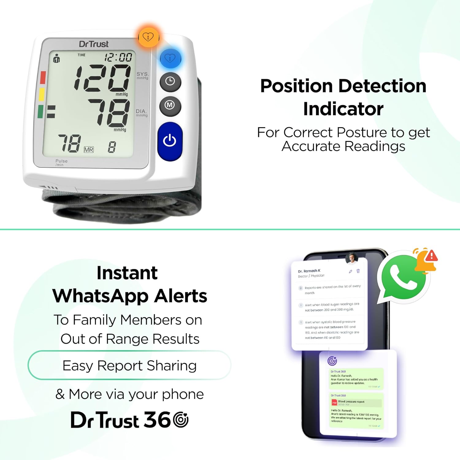 CLINICALLY ACCURATE MONITORING: The Dr Trust Wrist Bp Monitor Digital Machine guarantees the highest level of precision and reliability with featured cutting-edge MDD technology. Our BP monitor adheres to medical standards, providing trustworthy blood pressure measurements with every use. Its large and clear display makes easy to read results for individuals of all ages.