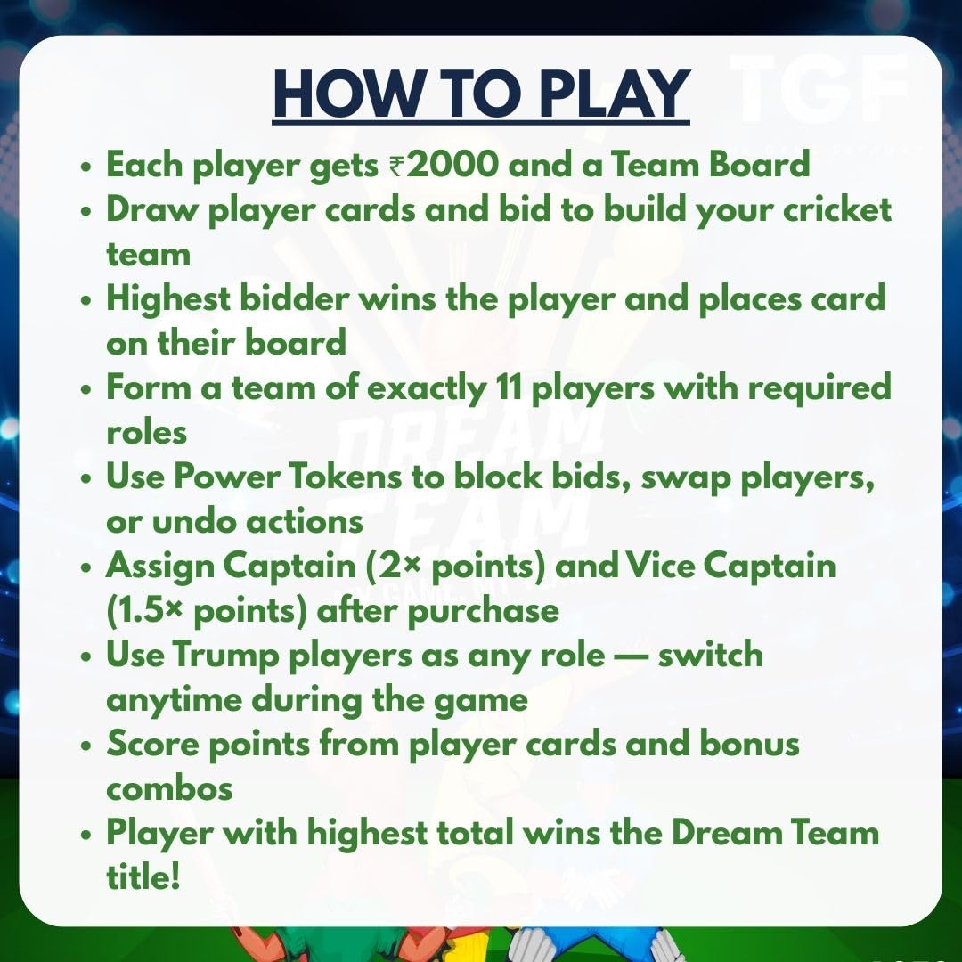 Dream Team is a Fun Board Game on Fantasy Cricket. As a Cricket Team Owner, you try to Build your Dream Cricket Team in this Awesome Board Game