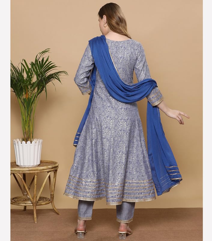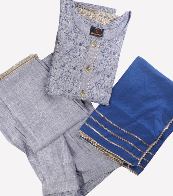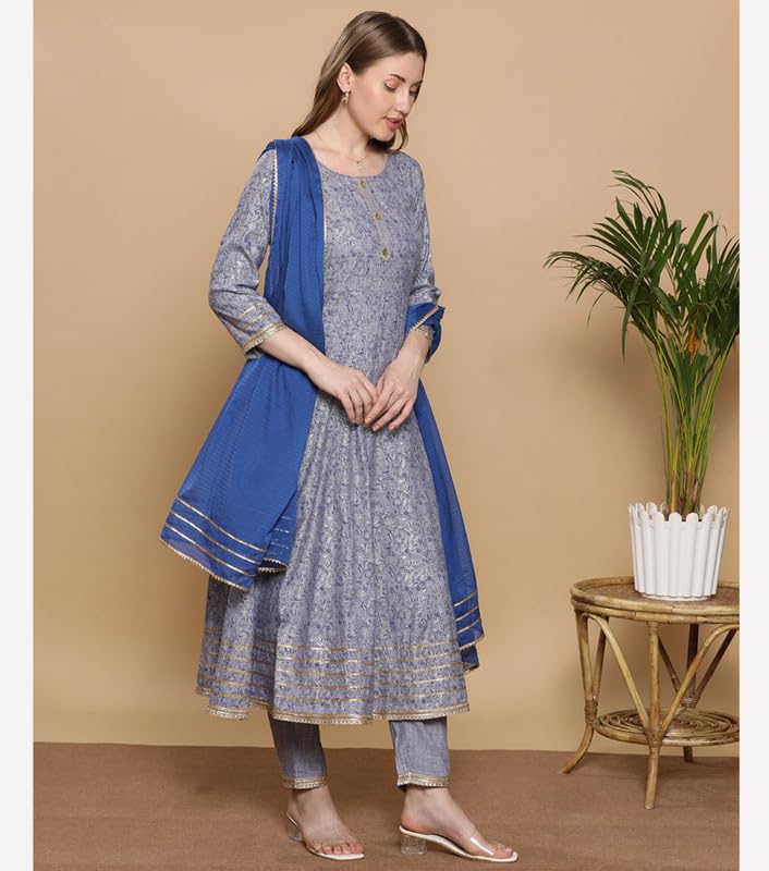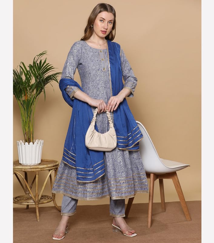 DUMMY SHAPE Kurta Sets for Woman | Printed Cotton Rayon Festive Ethnic Kurti with Pant & Dupatta | Anarkali Suit for Women with Side Pocket