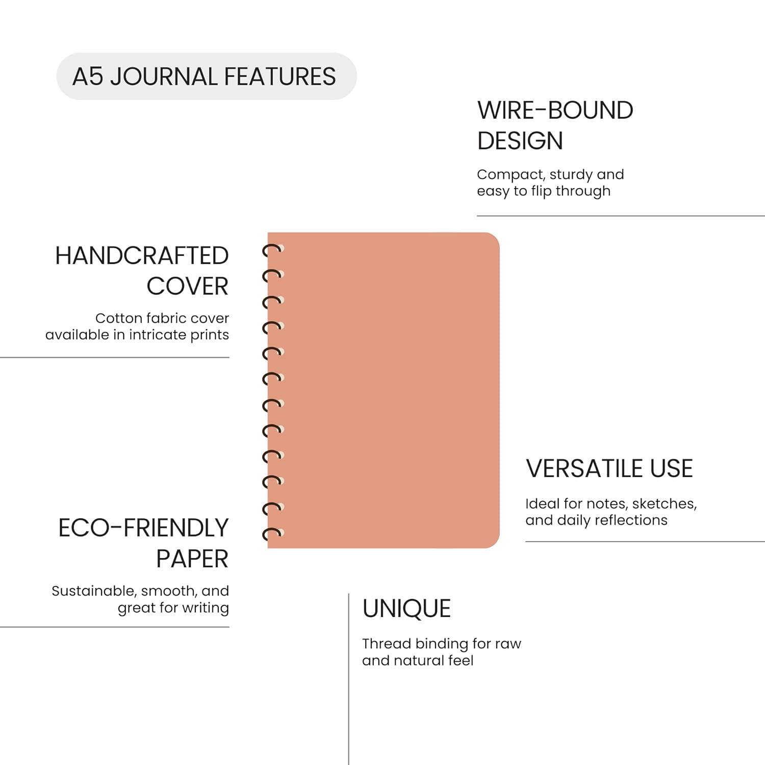 Featuring 180 ruled pages of premium 100 GSM eco-conscious paper, this journal is perfect for note-taking, bullet journaling, meeting minutes, or planning your next big idea. The wire-bound format ensures a 180° lay-flat opening, allowing you to write freely across every inch of the page.