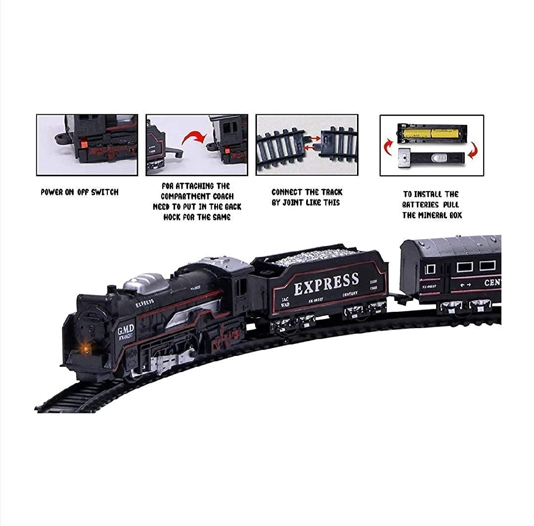 Electric Express Train Set- 13 Pieces Realistic Simulation Battery Operated High-Speed Small Black Train Toy Set for Kids Boys Girls and Toddlers (13 PCs Express Train Track Set)