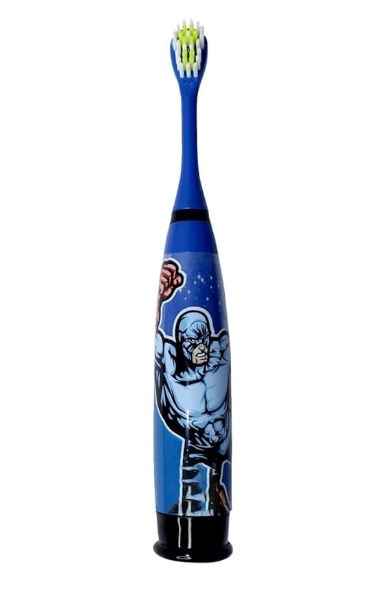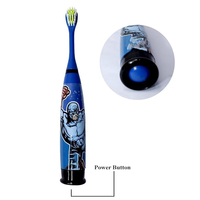 Electric Toothbrush with Super Hero Theme Printed with 2 Brush Heads & 1 Cleaning Modes for Kids | Rechargeable Battery & Ultra Soft Nylon Bristles(Blue Color)