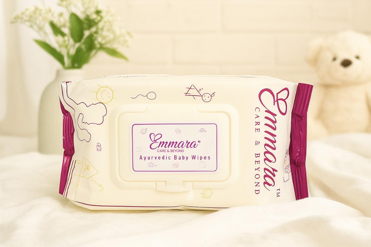 Enriched with Ayurvedic Goodness for Gentle Cleansing Each wipe is infused with a powerful blend of traditional Ayurvedic ingredients—Calendula, Chamomile, Aloe Vera Gel, Coconut Oil, and Licorice. These time-tested herbs work together to cleanse your baby’s delicate skin gently while offering healing, soothing, and nourishing benefits with every use.