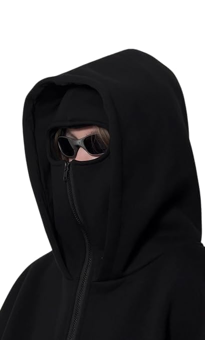 EXOTIX Oversized Balaclava Hoodie – Unisex Black Full Zip Sweatshirt with Built-in Face Cover, Warm Winter Jacket for Men & Women, Casual Travel College Streetwear