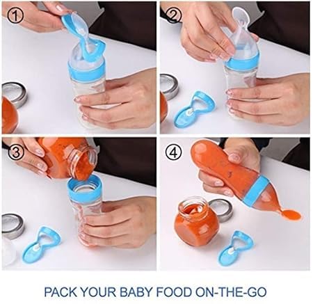 Feeding Spoon with Squeezy Food Grade Silicone Feeder Bottle, for Infant Baby, 90ml, BPA Free
