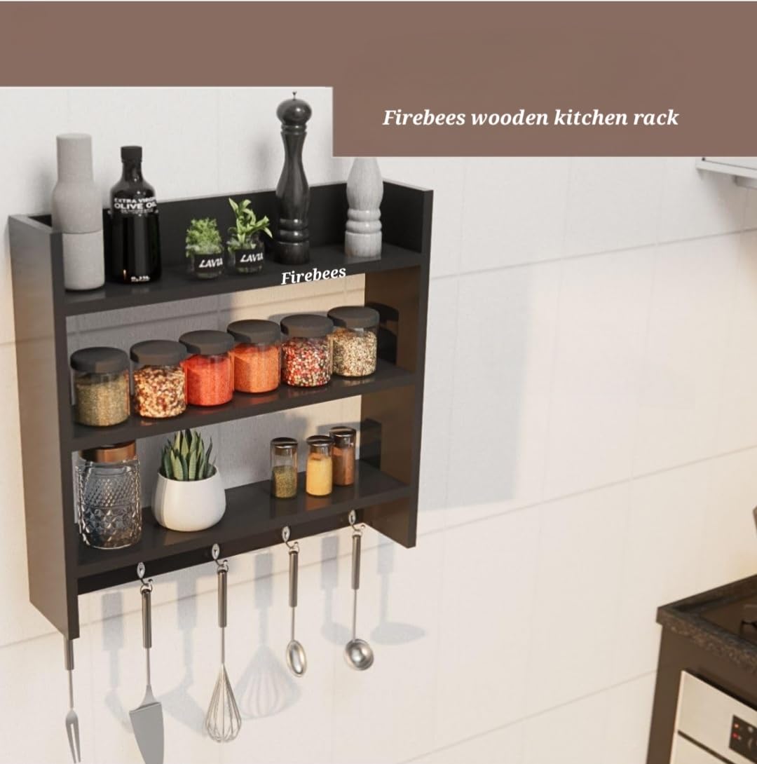 FireBees Wooden Kitchen Organizer Rack – Wall Mounted Kitchen Rack for Storage | Wooden Shelf for Kitchen | Wall Mounted Shelves | Kitchen Rack Stand | (1, Hook rack)