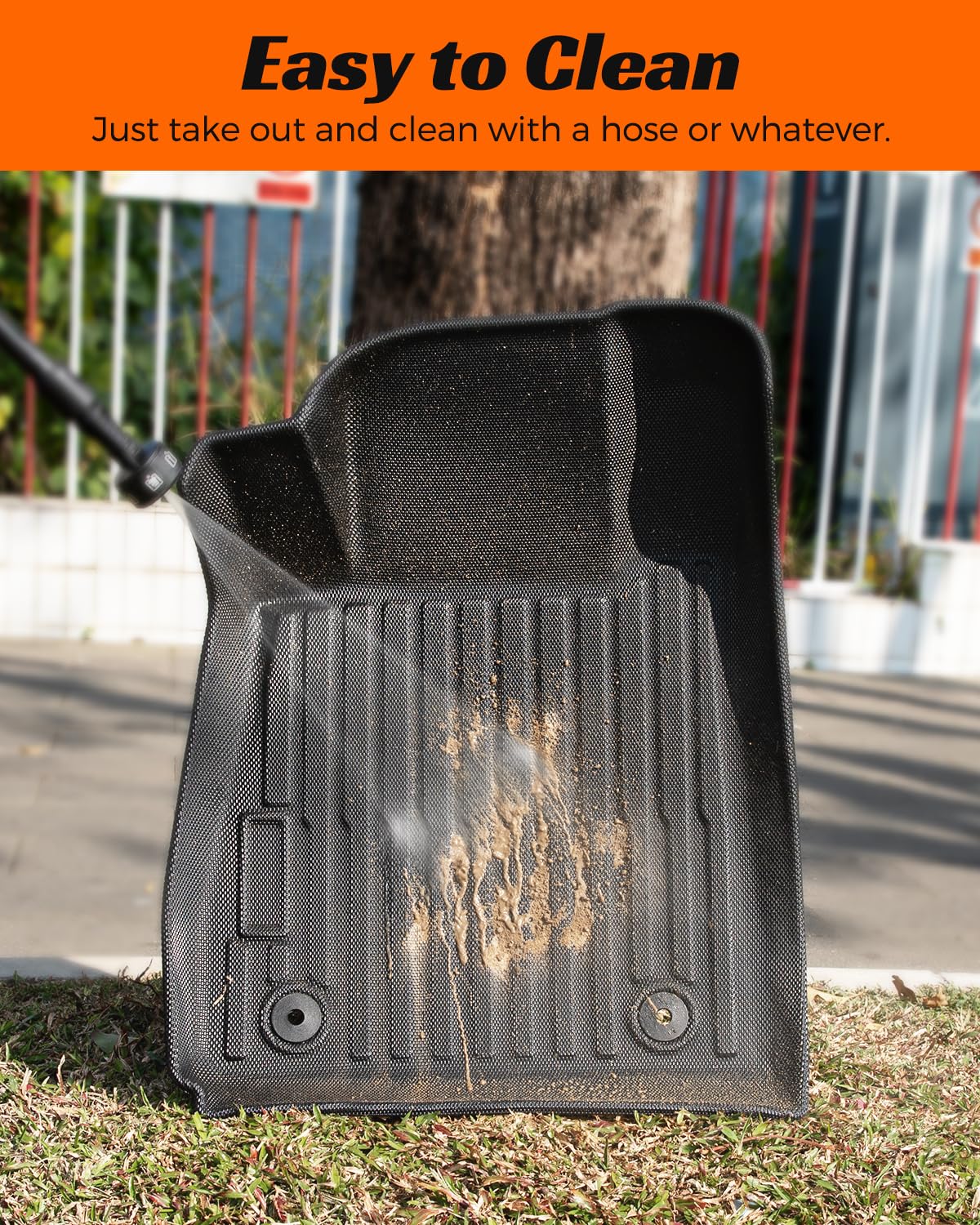EASY TO CLEAN & INSTALL: Hose down, wipes down easily and just let air dry; Easy to clean, won’t shed, and won’t accumulate stains or build up; The rubber floor mats are made of lightweight material, easy to install and remove