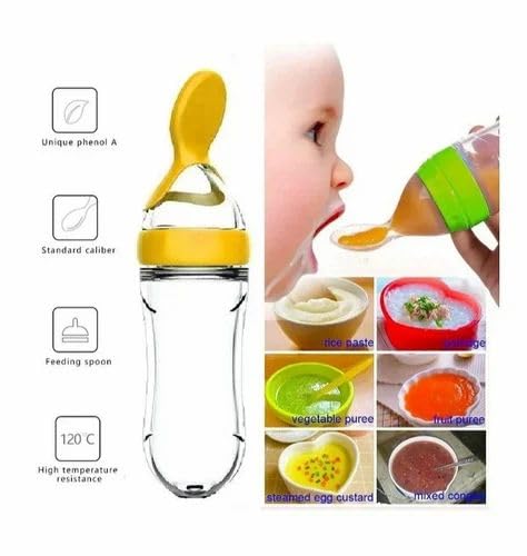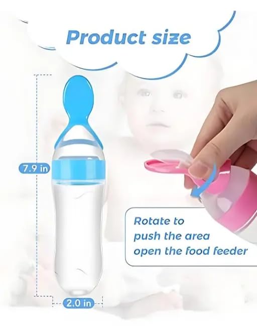 Make feeding time effortless and mess-free with the MINKU CREATIONS Food Feeding Spoon with Squeezy Silicone Feeder Bottle. Designed to help parents feed their babies smoothly, this 90ml soft silicone feeder bottle combines a bottle and spoon in one, making it ideal for liquid and semi-solid foods such as milk, formula, purees, cereals, and juices. Crafted from 100% food-grade, BPA-free silicone, this baby feeder is safe, soft, and gentle on little mouths. The squeeze-to-feed mechanism allows parents to dispense the right amount of food with ease, preventing overfeeding or spills. The anti-leak design ensures no mess, while the protective cap keeps the spoon hygienic when not in use. The ergonomic and lightweight design makes it easy to hold and use, allowing for controlled feeding. Whether at home or on the go, this silicone baby feeder spoon is the perfect solution for hassle-free feeding and a must-have for parents transitioning their babies to solid foods.
