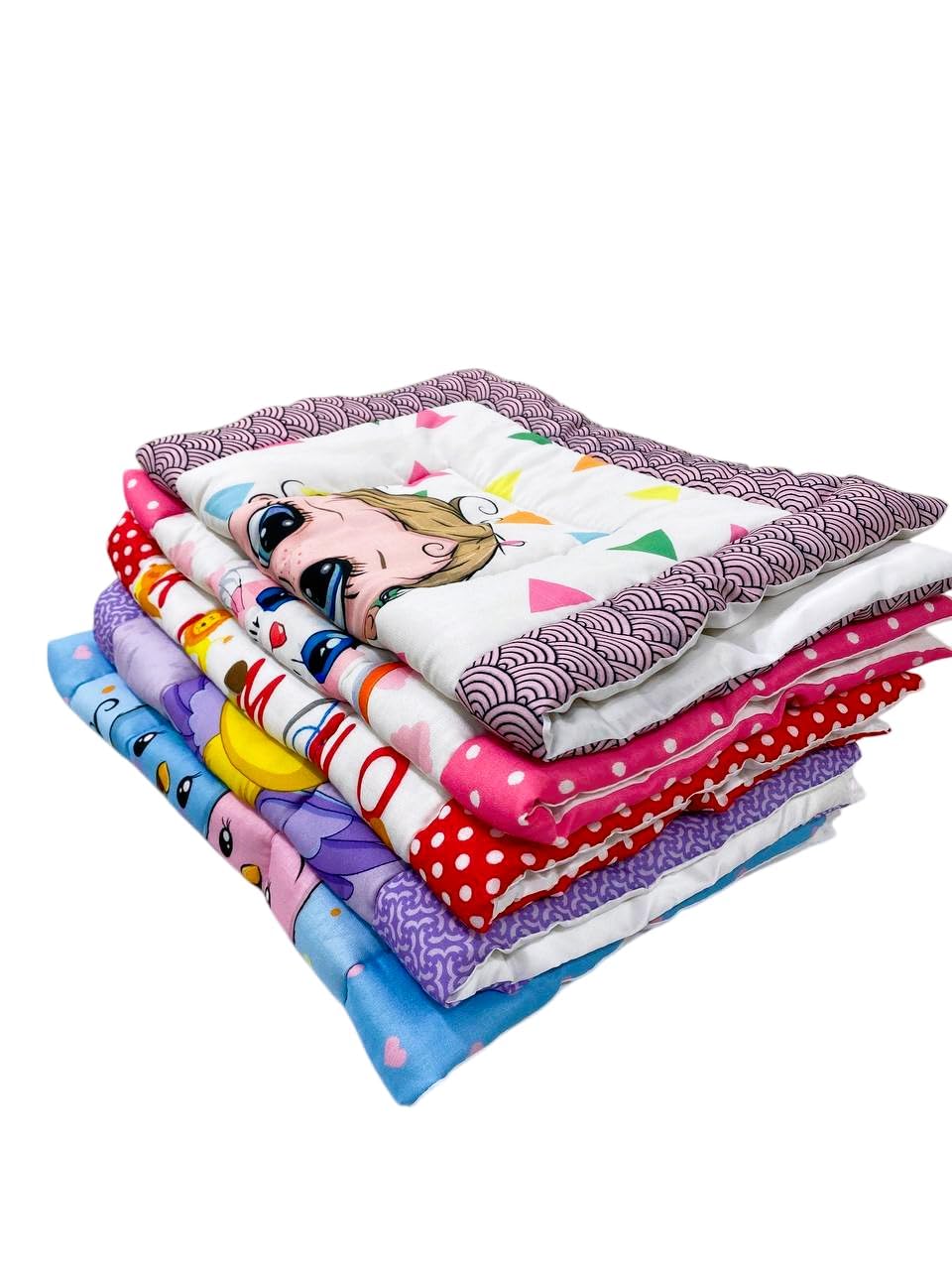 DESIGN VARIETY: Pack of 5 cotton baby mattresses featuring adorable cartoon prints including alphabets, animals, and cute characters with polka dot borders