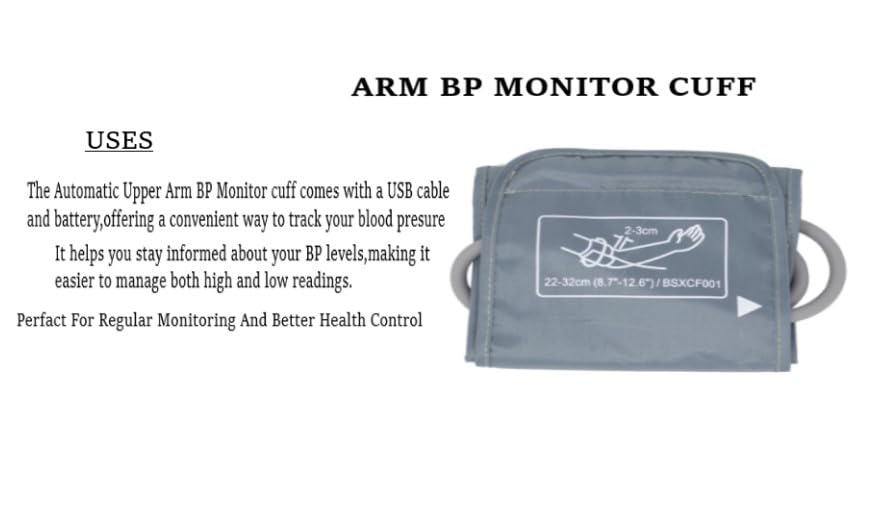 Take control of your health with the Automatic BP Blood Pressure Monitor, designed to provide fast, accurate readings with just a single press of a button. This easy-to-use digital monitor features a large, clear LCD display, making it perfect for home or family use. Whether you need to check your blood pressure regularly for health management or simply monitor your well-being, this device ensures precision and convenience. It automatically detects any irregularities such as arrhythmia, alerting you when further consultation may be necessary. The ergonomic cuff fits most arm sizes, providing a secure and comfortable fit during use.