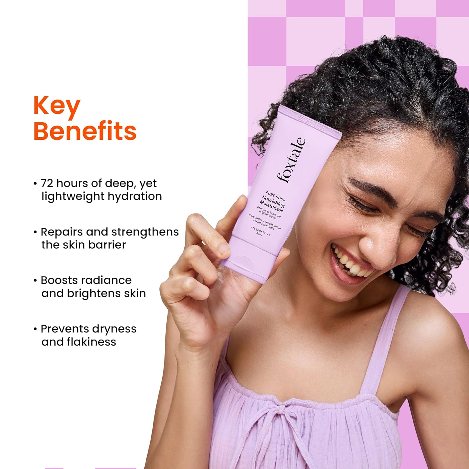 Foxtale Nourishing Ceramide Face Moisturizer with Niacinamide for 72 Hr Hydration, Lightweight & Non-Sticky, For Soft & Glowing Skin, Men & Women, All Skin Types, 50 ml