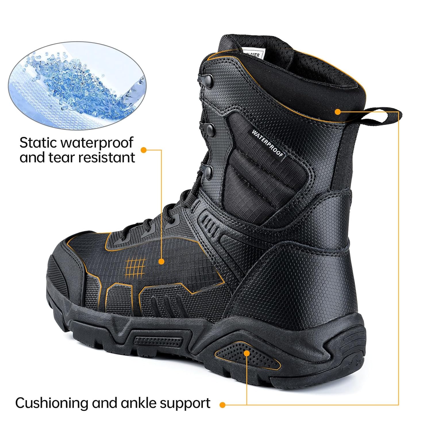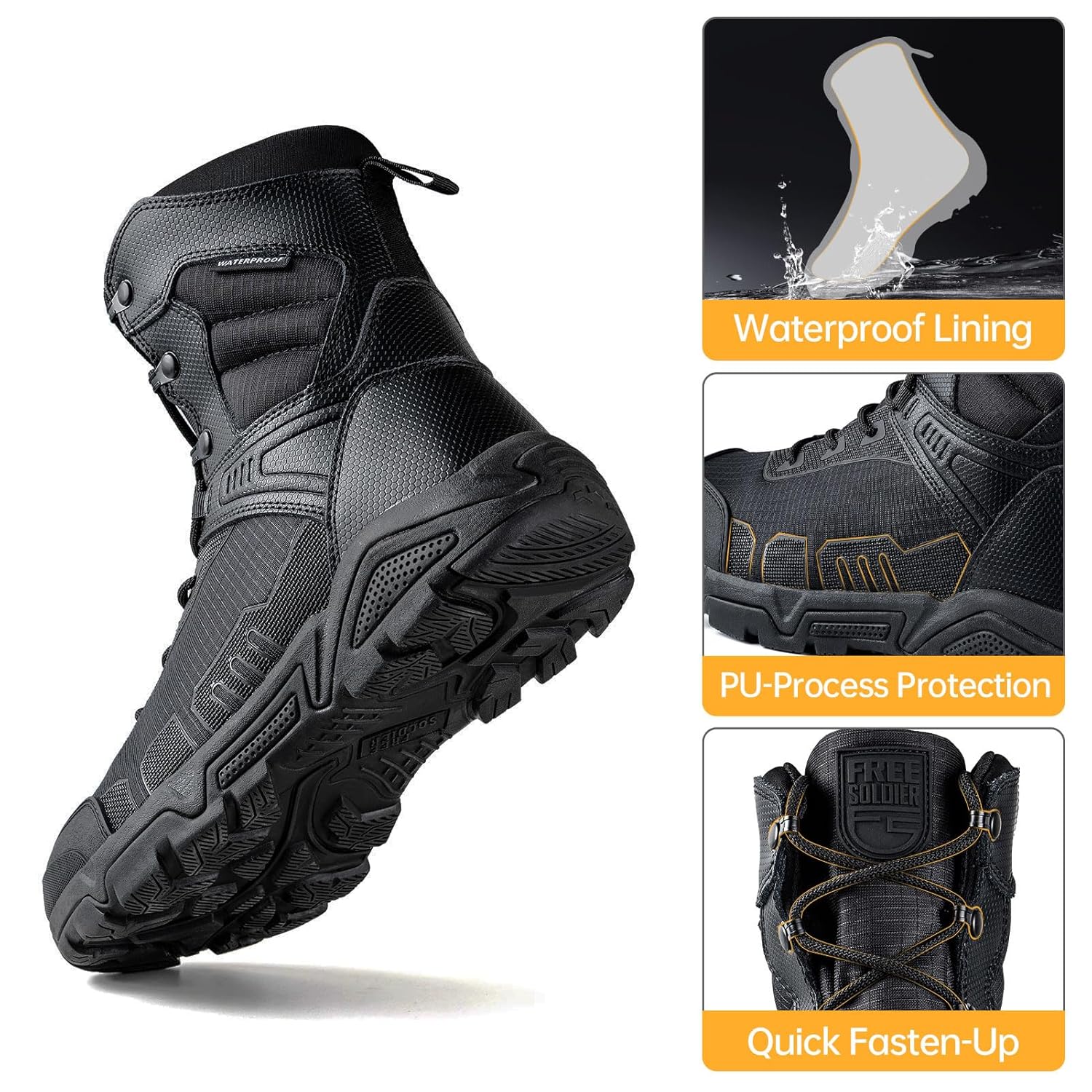 FREE SOLDIER Men’s Military Tactical Boots Waterproof Hiking Work Boots Durable Combat Boots