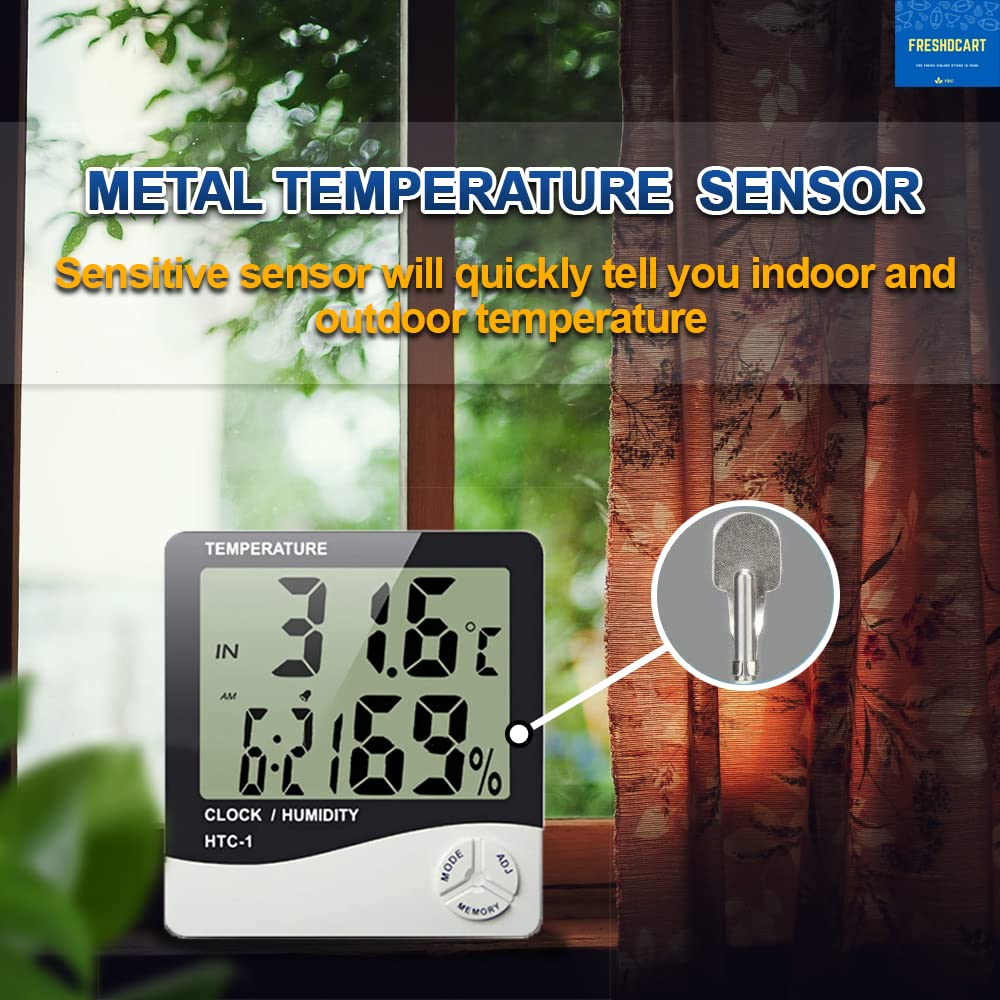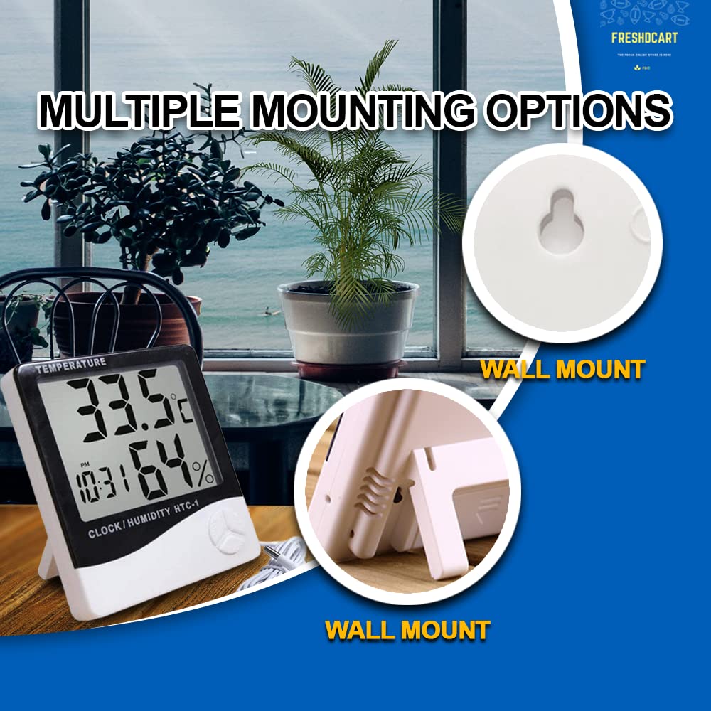 FreshDcart Room Temperature Thermometer with Humidity Meter – Accurate Indoor Sensor, Clear LCD Display, Digital Wall Clock Thermometer, Real-Time Monitoring, Ideal for Home, Office, Comfort & Health