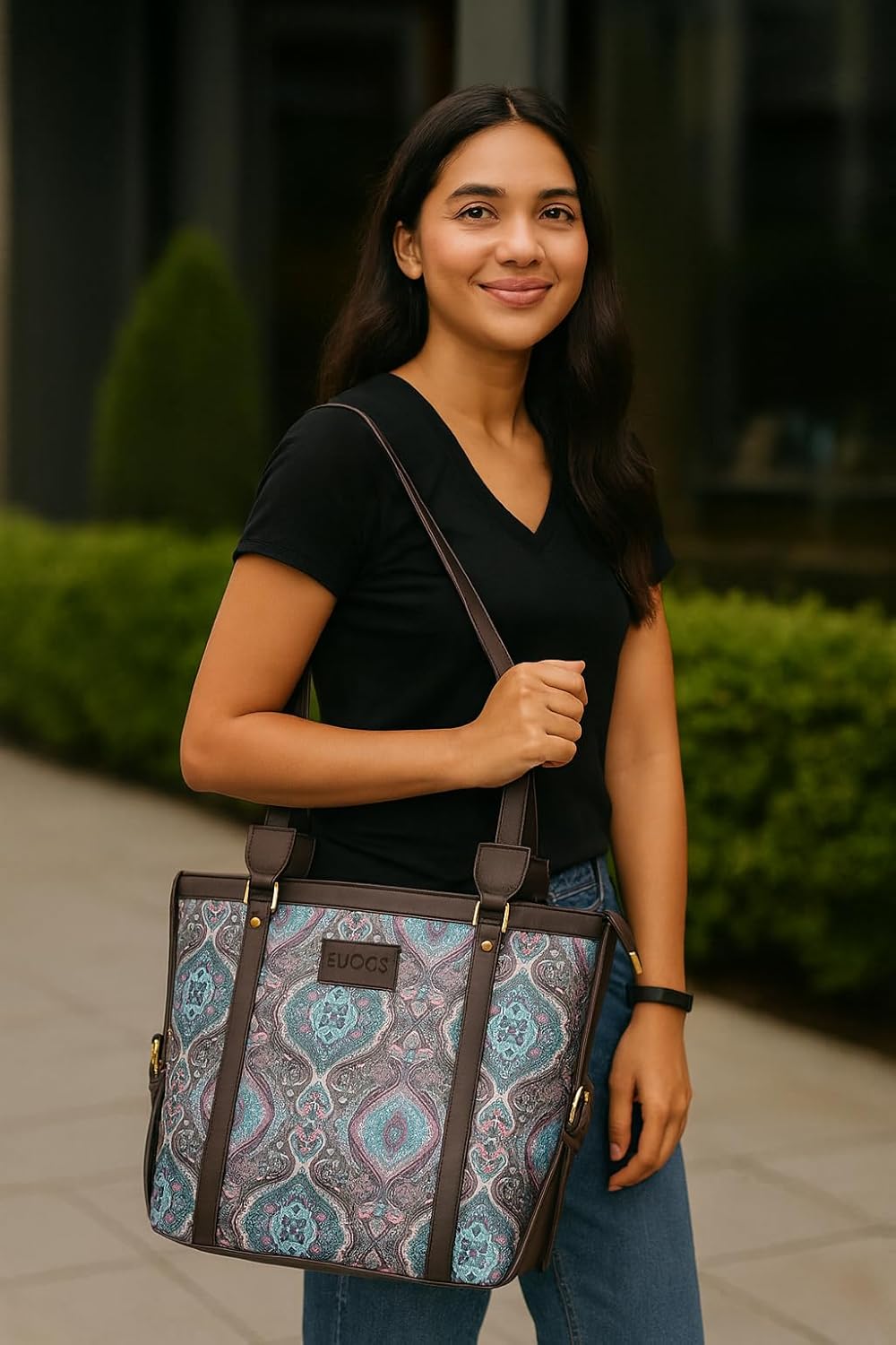 Elevate your style with the FUOCO Premium Tote Bag for Women – the perfect blend of fashion and function. This geometric patterned tote bag is crafted from high-quality faux leather, offering a bold yet sophisticated look that’s ideal for work, travel, and daily use. With its spacious multi-compartment design, this women’s shoulder bag keeps your essentials organized and secure, whether you’re carrying a laptop, tablet, books, or travel essentials. Designed for modern, busy lifestyles, the FUOCO tote includes a dedicated laptop compartment (fits 13-15.7 inch laptops), two wall slip pockets for quick access items, two small mesh pockets for secure storage, and a medium capacity main compartment for larger items. The durable shoulder straps provide comfortable all-day wear, while the smooth zipper closure ensures your belongings stay safe on the go. Whether you’re heading to the office, the airport, or a weekend getaway, the FUOCO premium travel handbag is your perfect companion. Its unique geometric design and premium materials make it a stylish addition to any outfit, while the practical interior layout keeps you organized wherever you go. Choose the FUOCO Premium Tote Bag for a blend of style, durability, and functionality – perfect for every modern woman on the move.