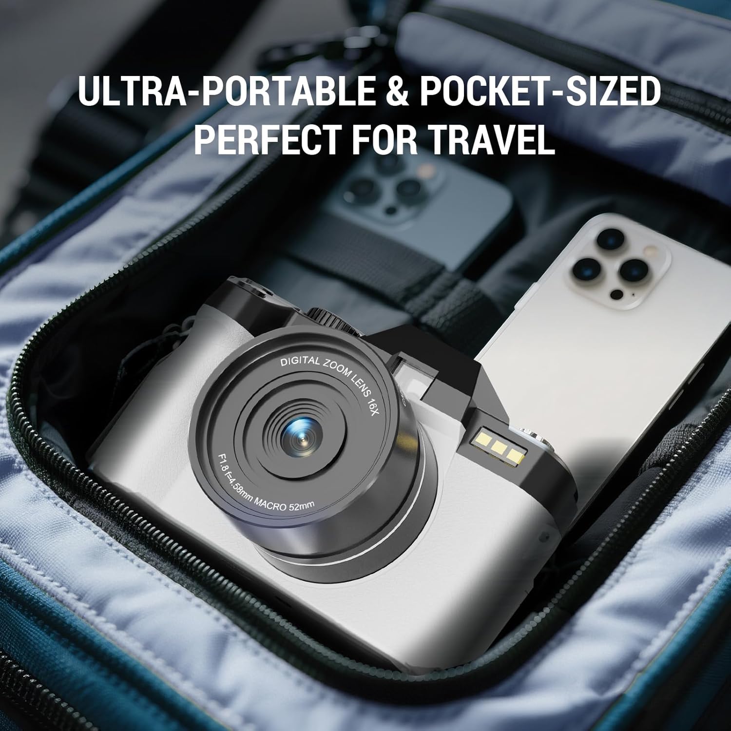【Digital Camera with Wide Angle Lens & Macro Lens】:The 4K camera equipped the camera with a professional detachable 52mm wide angle lens with macro lens, so the camera is great for capturing wide horizons easily, and macro lenses capture the diversity of the tiny world. Help you record more beautiful moments in your life.