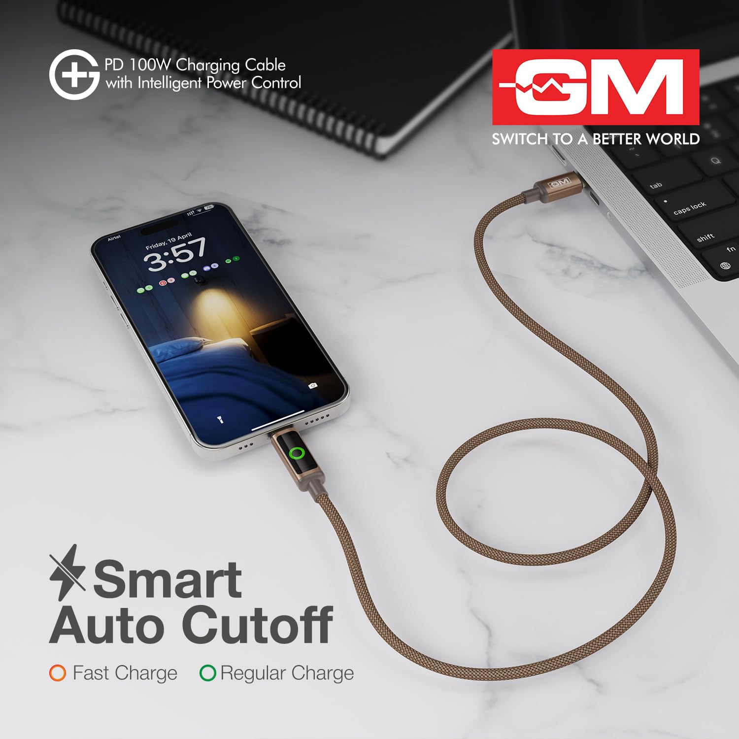 G+ PD 100W Charging Cable with Intelligent Power Control | Smart Auto Cutoff, LED Indicator, 480Mbps Data Transfer, 120cm Tangle-Free Cord, Fast Charging for Laptops, Tablets & High-Power Devices.
