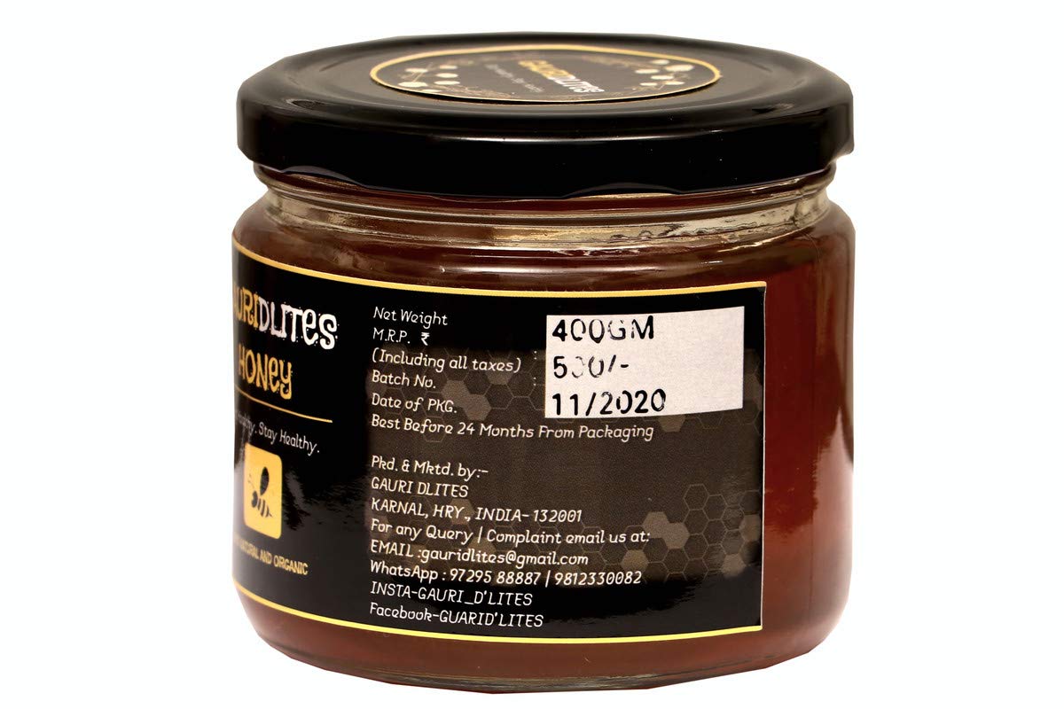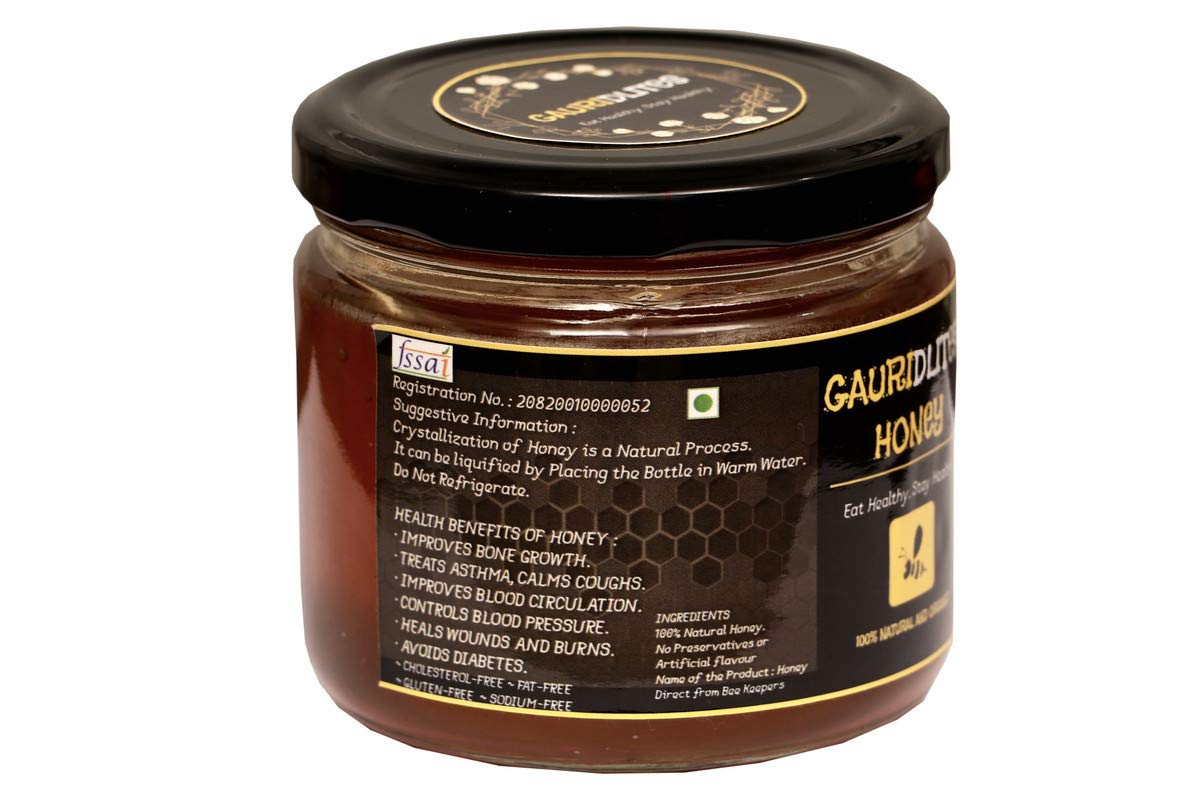 GAURIDLITES honey is 100% Natural and Organic. It is unfiltered, unheated, unpasteurized, untreated. It has no artifical flavours, no artificial colours and no preservaties.