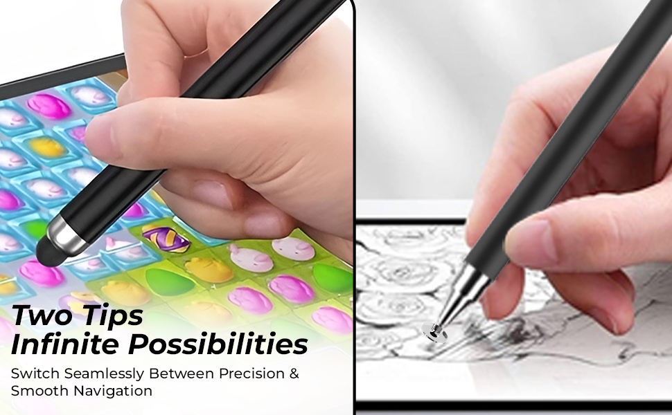 High-precision design for flawless control: The transparent disc tip ensures exceptional visibility and control, while both tips protect screens from scratches, smudges, and fingerprint buildup.