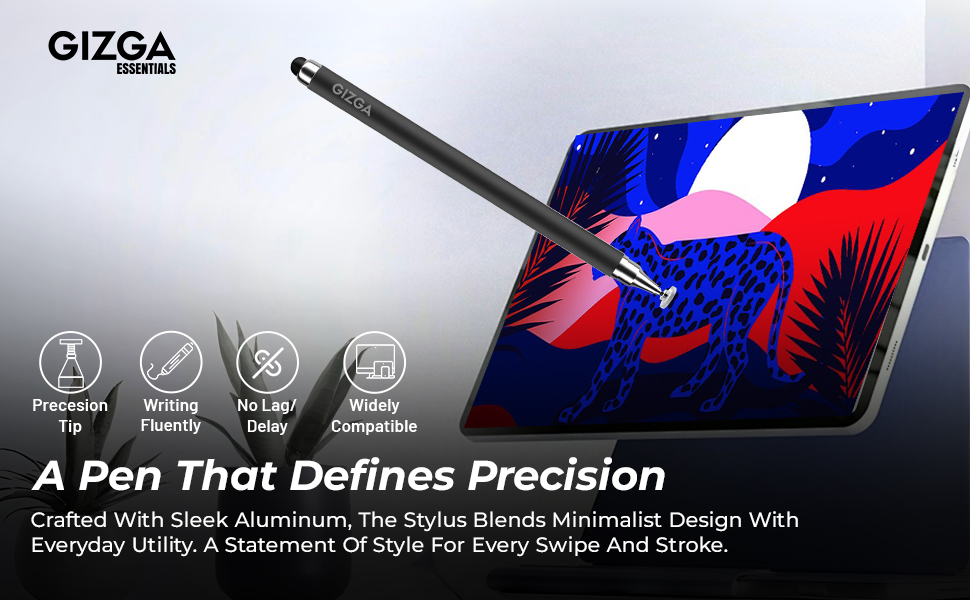 Gizga essentials 2 in 1 Universal Stylus Pen for All Touchscreen Devices| Fine Point Disc Tip & Soft Rubber Tip Touch Pen for iPad/Pro/Air/mini, iPhone, iOS/Android, Tablets, Smartphones, (Black)