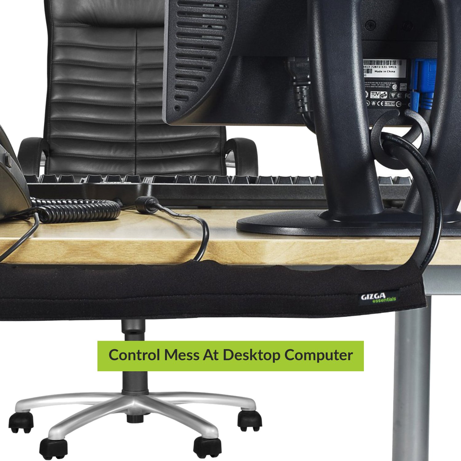 Gizga Essentials Cable Organiser, Cord Management System for PC, TV, Home Theater, Speaker & Cables, Reusable Cable Organizer for Desk, WFH Accessories, Flexible Neoprene Wrap Cable Manager, 38cm*1