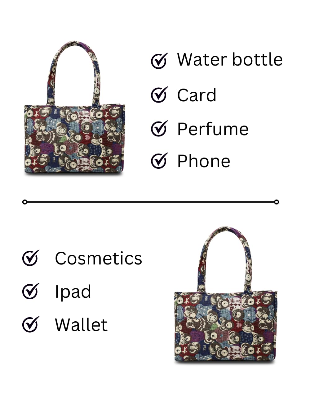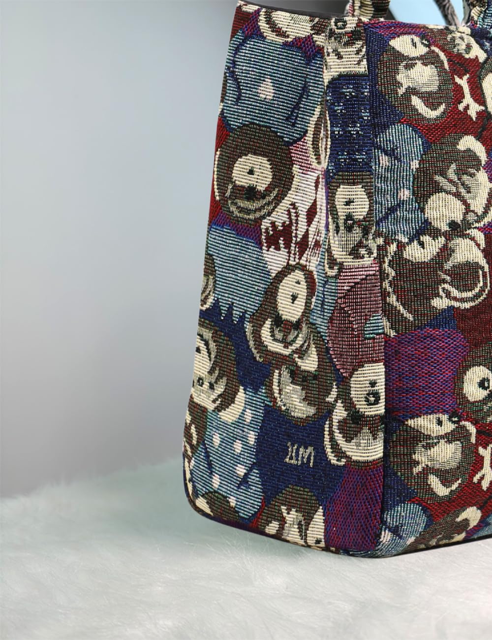 Glowic handbag | Totebag | tote bag for woman | handbag for woman | women handbags | women handbags big size | Cotton bag (WBAG-110) Introducing the Glowic Cartoon Jacquard Tote Bag, a fun and trendy accessory for women who love unique fashion. Made from high-quality jacquard fabric, this tote bag features a quirky multicolor cartoon print, making it a standout statement piece. Designed for daily use, shopping, work, or travel, it offers a spacious compartment to carry all your essentials with ease. With its sturdy, reinforced handles, this durable handbag ensures a comfortable grip for all-day carrying. The vibrant and playful design makes it an eye-catching addition to any outfit, whether casual or semi-formal. Its premium craftsmanship guarantees long-lasting use, making it a must-have fashion accessory for modern women. Upgrade your collection with this Glowic India tote bag, combining style, utility, and creativity—perfect for those who love to express themselves through fashion!