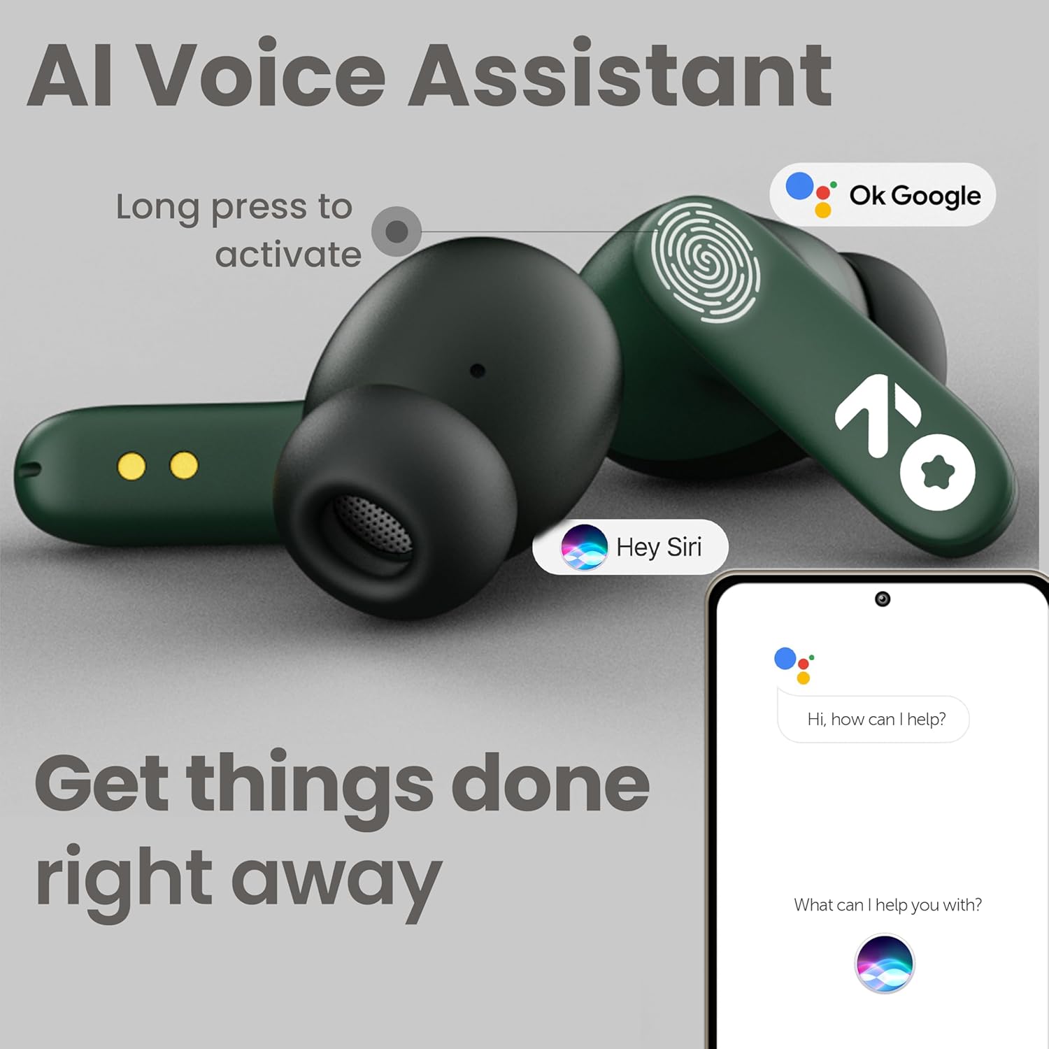 GOBOULT Z20 Truly Wireless Bluetooth Ear Buds with 51H Playtime, Zen™ Calling ENC Mic, Made in India, Low Latency Gaming, Touch Controls, Rich Bass Drivers, TWS Earbuds Bluetooth Wireless (Pine Green)