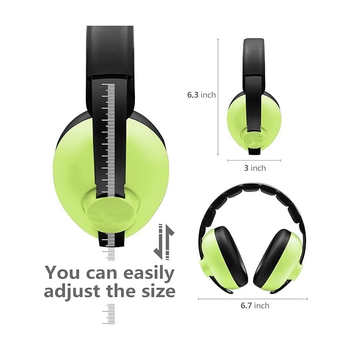 Gra8 Noise Cancelling Earmuffs for Kids | Baby Hearing Protection | Comfortable Ear Muffs for Kids Ages 0-3 | Adjustable | Safe Soundproof Headphones (Parrot Green)