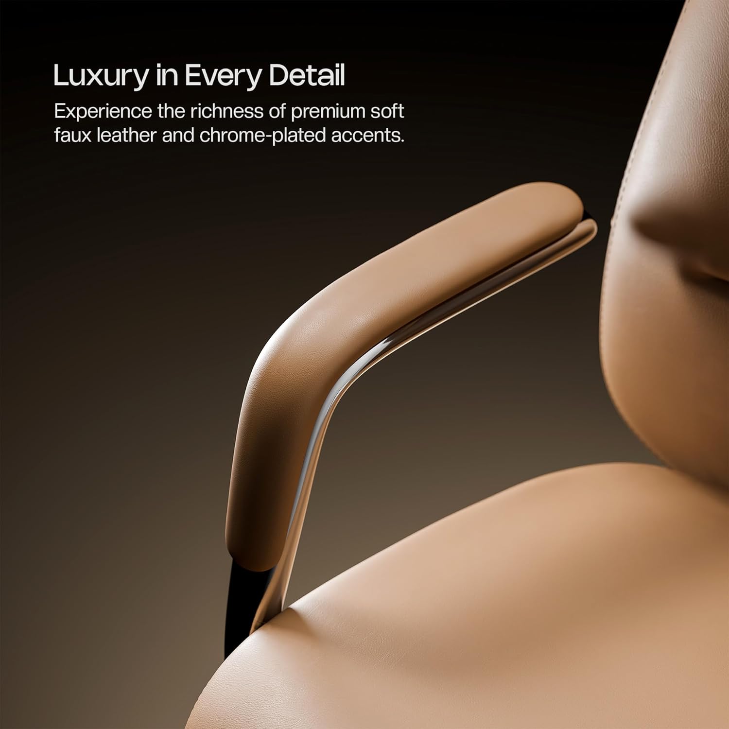 Green Soul Oslo Premium Boss Chair | Minimal Scandinavian Design | Ergonomic Faux Leather Executive Office Chair with Cushioned Seat | Chrome Finish | High Back (Tan)