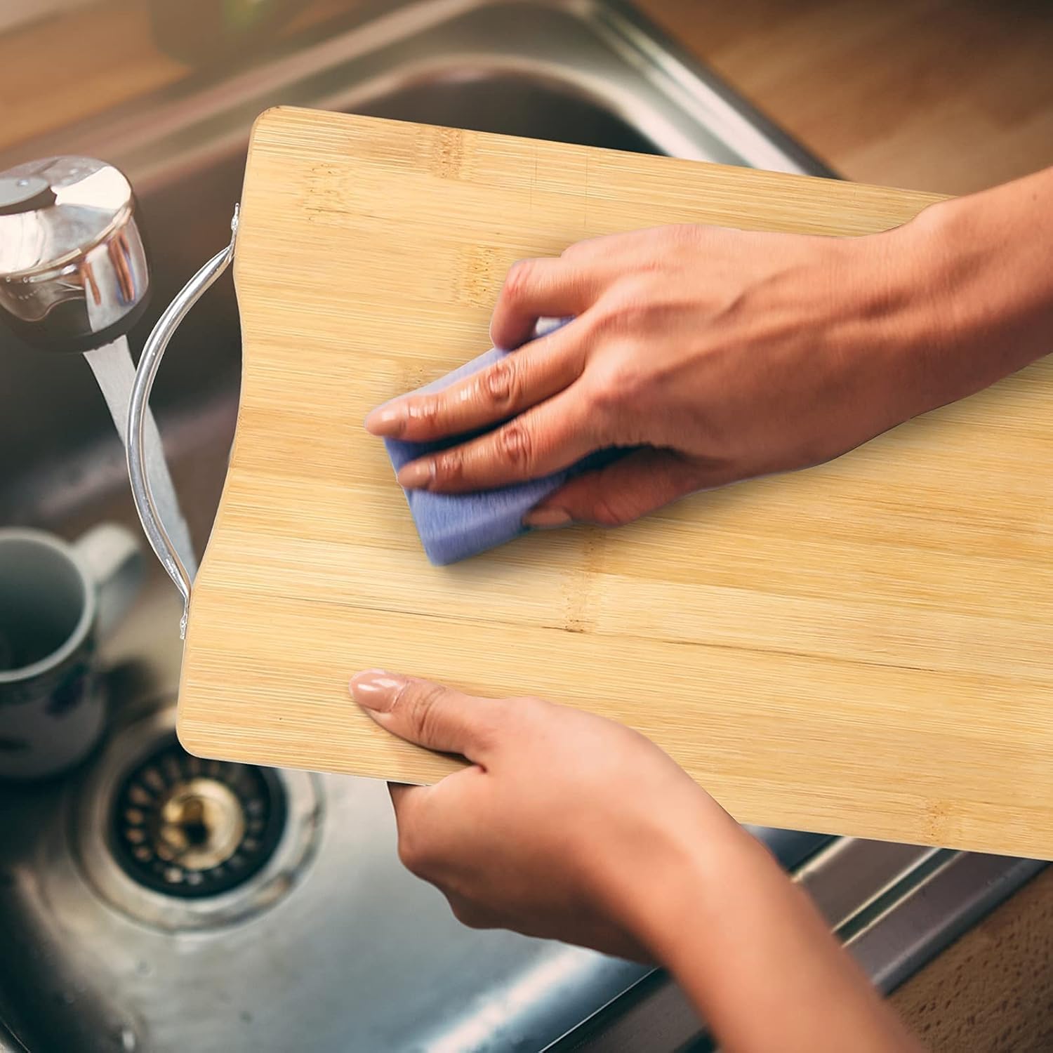 DURABLE & EASY TO CLEAN – Thick Bamboo that can withstand heavy blows, chopping and soaking, would not warp or split, and is more durable than most brand cutting board whose material is wood. Clean with mild soap and water; dry thoroughly. Do not submerge in water to extend life of the boards.