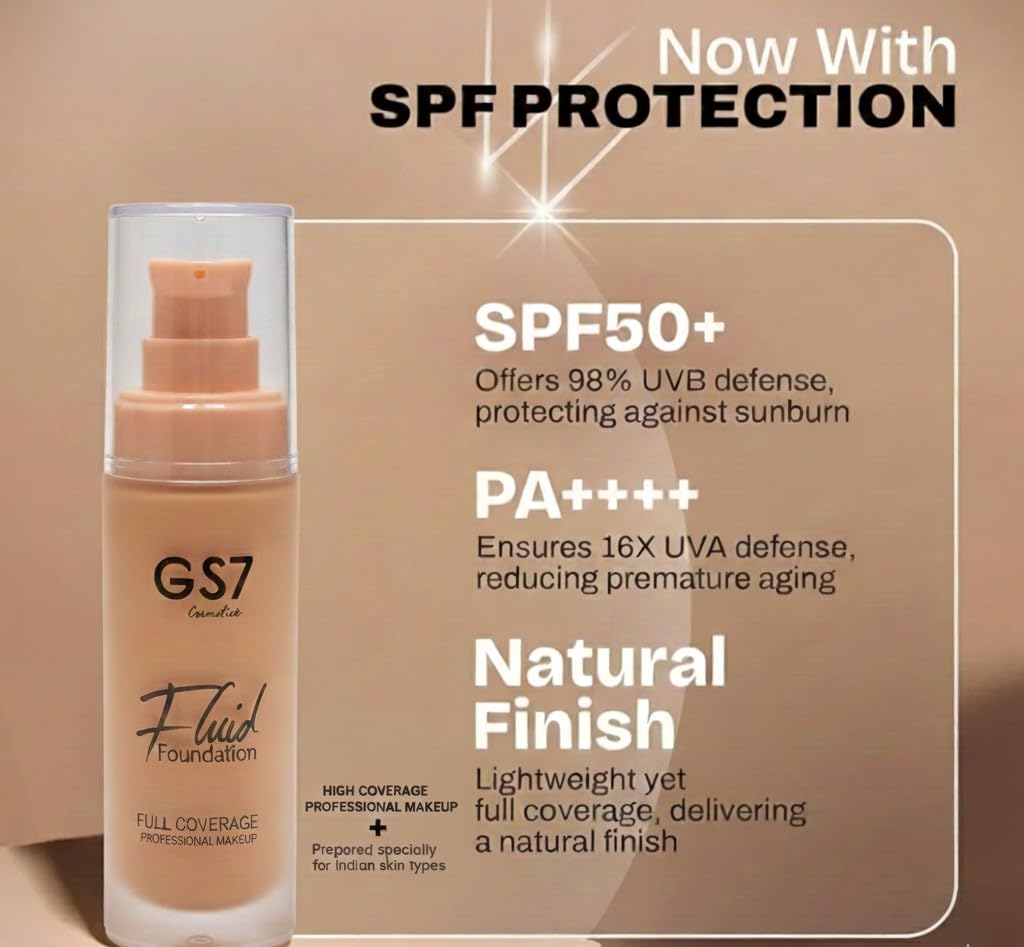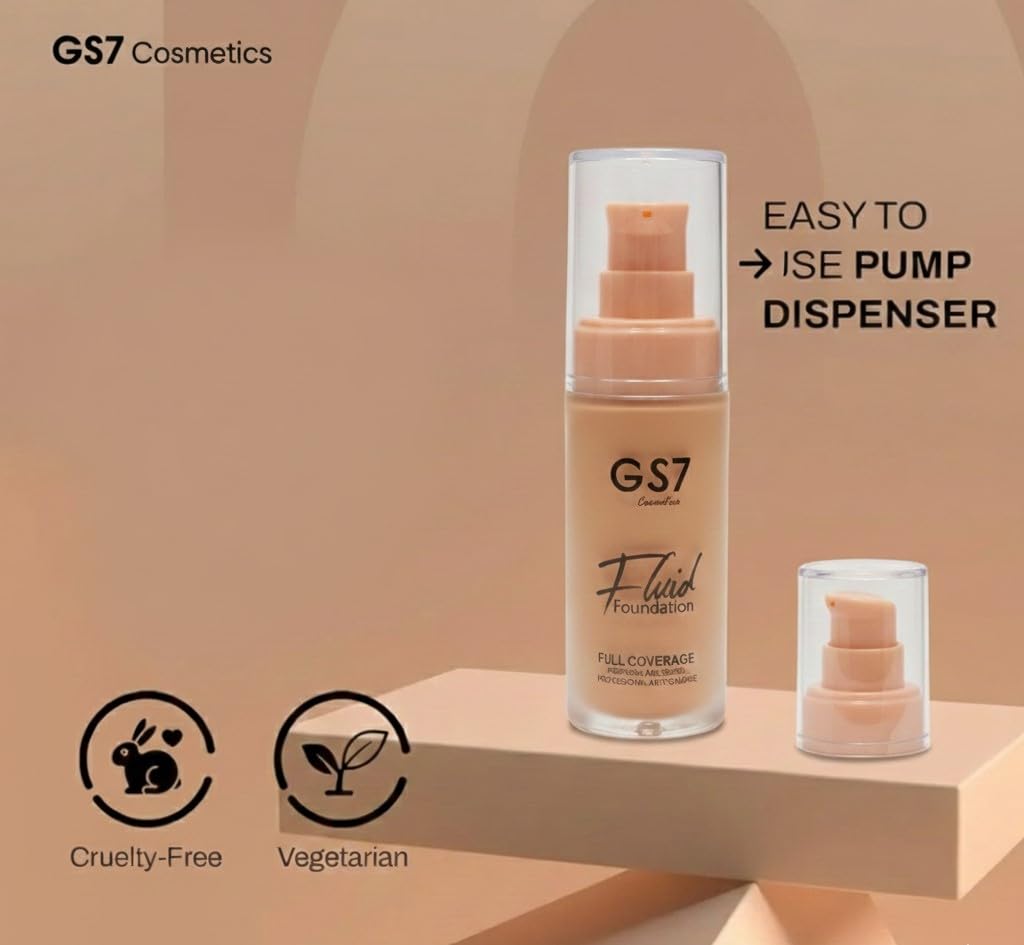 FULL COVERAGE FORMULA: GS7 Cosmetics Fluid Foundation delivers full coverage with a matte finish, perfect for concealing blemishes and achieving a flawless complexion