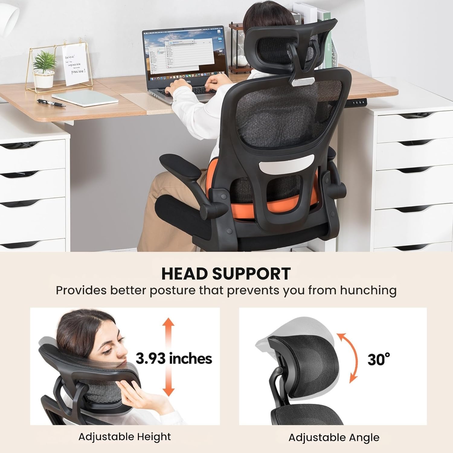Flip-up Armrest Office Chair: The armrests flip from 0° to 90°, letting you easily slide the chair under your desk when not in use. Perfect for maximizing space in work-from-home or office setups