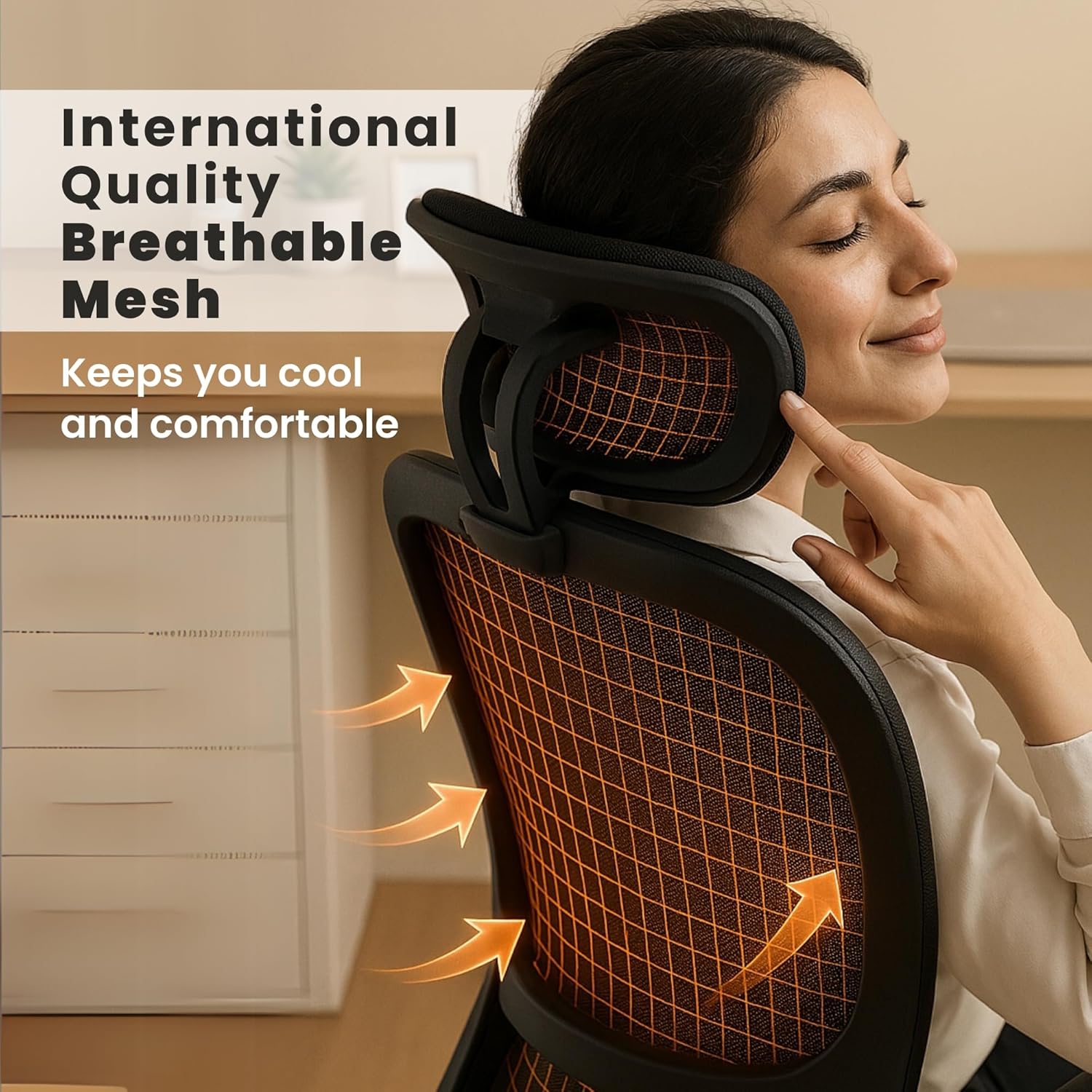 GTPLAYER Hustle Premium Mesh Office Chair, Ergonomic Work from Home Chair, Auto-Adaptive Lumbar Support, Adjustable Headrest, 3 Year Warranty (Mesh Black)