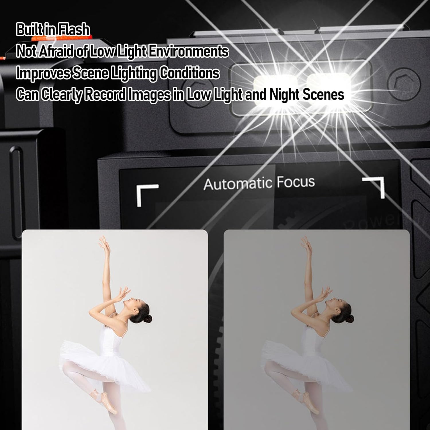 Flash, Hot Shoe Interface: Built-in flash ensures you can shoot in low-light environments without sacrificing clarity. The hot shoe recessed interface supports external professional accessories, such as fill light, without the need for additional mounting bracket.