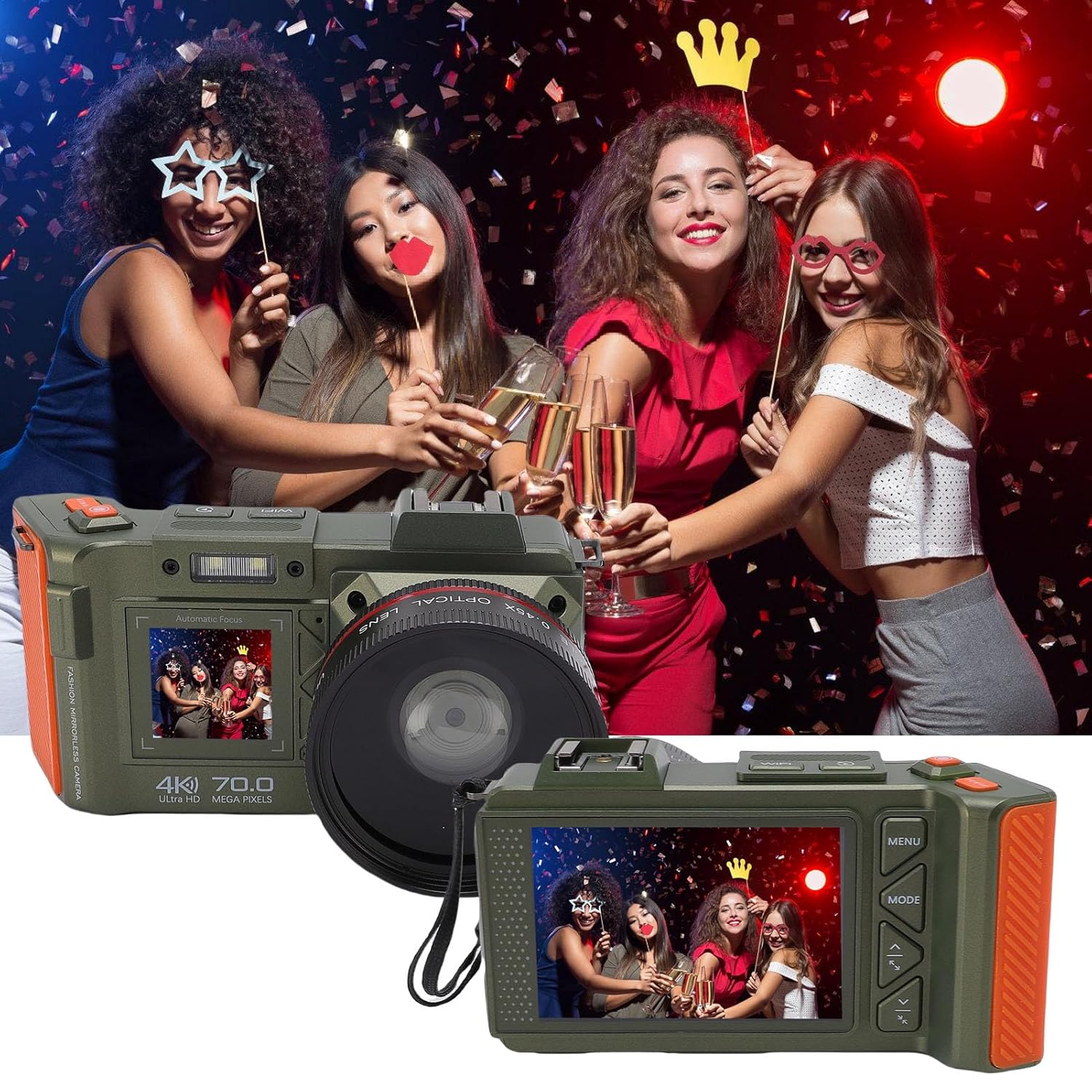 Effortless Sharing, Dual Screen – Instantly share your photos via WiFi without lag, transferring high-resolution images and videos directly to your mobile device. With dual screen functionality, this camera makes it easy to take selfies or groups of photos from any angle.