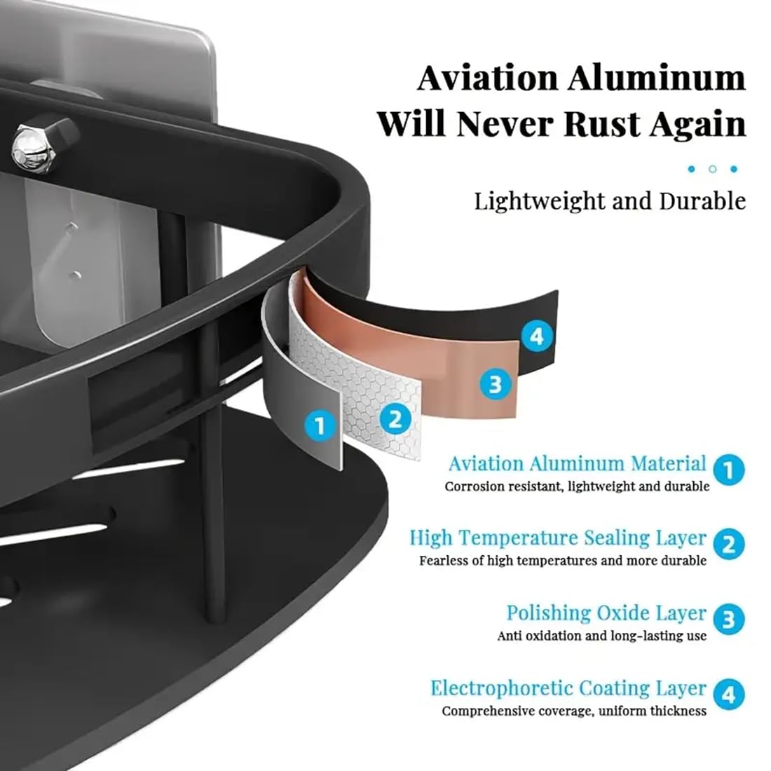 [ STRONG ADHESIVE ] – Waterproof adhesive keeps your shower organizer stable. The adhesive bathroom shower wall shelf is more durable and stronger than suction cups, NOTE: Heat the adhesive with a hair dryer to reposition the adhesive shower caddy without leaving any marks or damaging the wall.
