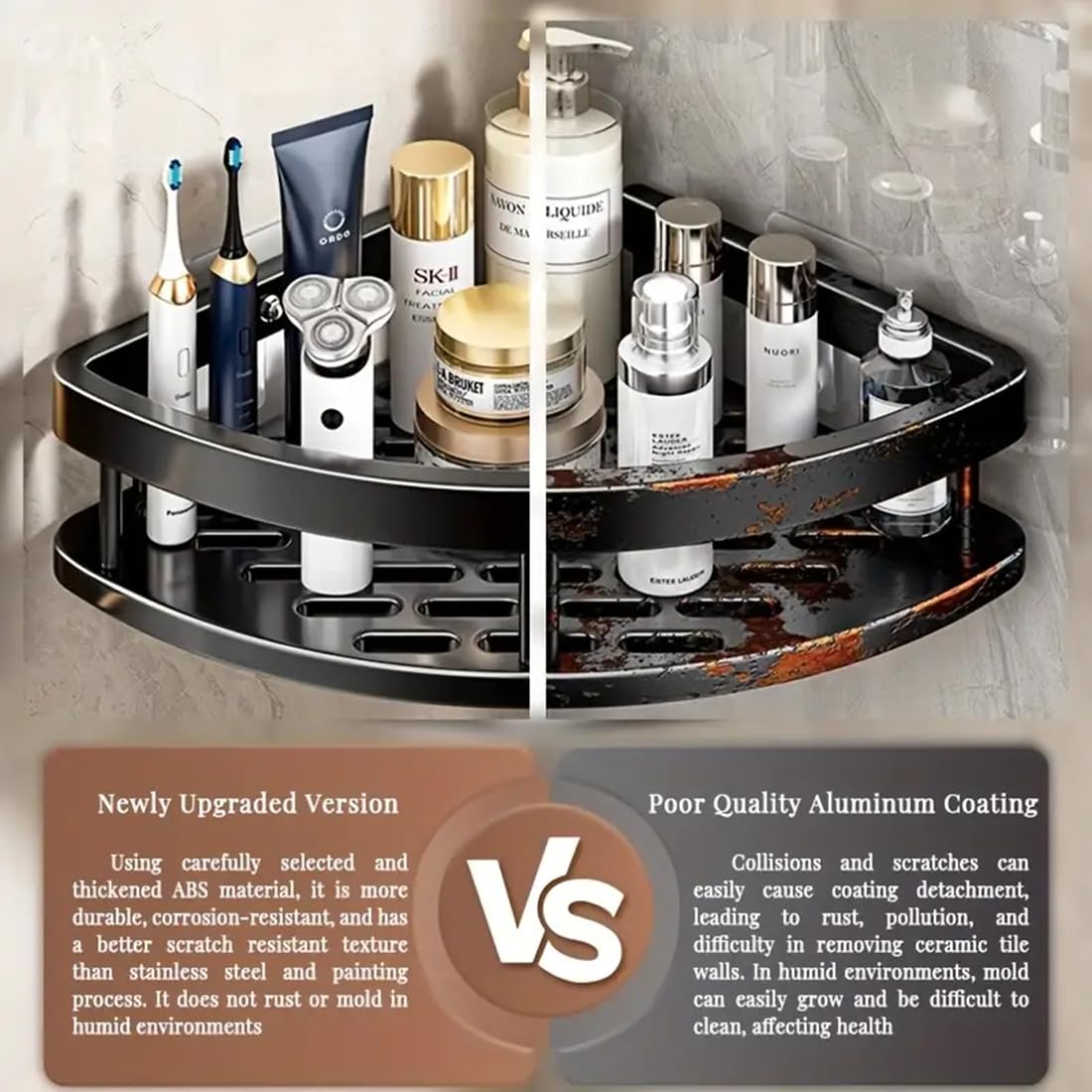 [ Anti-Rust Material & Space Organizer ] – It is made of high-quality Aluminum and Carbon steel material. The corner shower box is anti-rust, anti-scratch and durable for use. Only suitable for 90° right angle corners to store your shampoo, body wash, bath sponge in shower storage. No drilling required, easy to install.