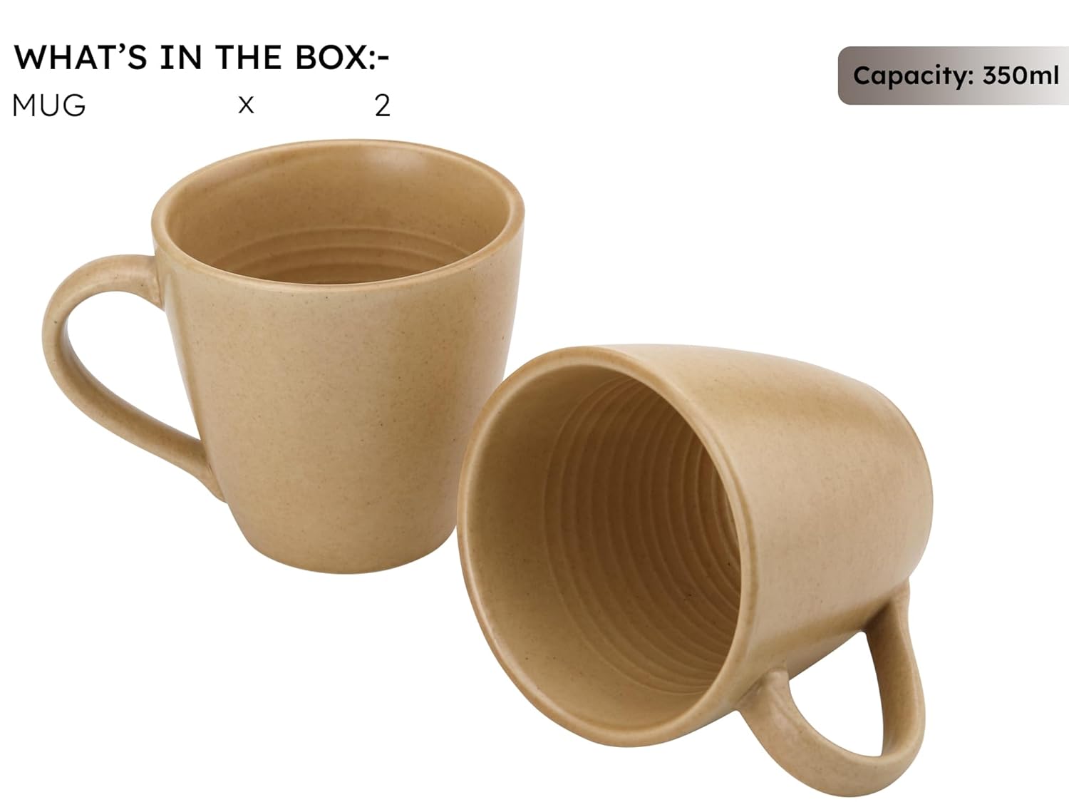Handcrafted Ceramic Coffee Mug Set of 2 Pieces (350 Ml), Stoneware Tea Cup, Microwave Safe Large Milk Mug, Matte Finish, Ideal for Daily use, Casual Gatherings and Gifting, Wood Brown
