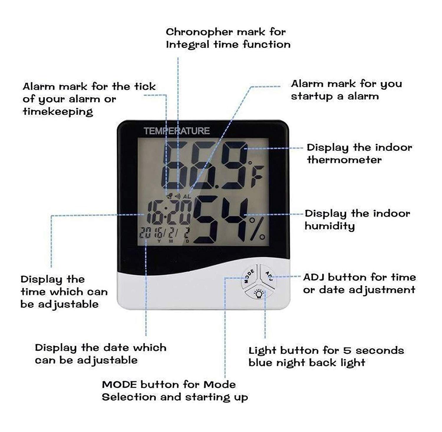 Customers find the humidity meter easy to use and appreciate its value for money as an economical temperature and hygrometer display. The device is useful for home purposes, with one customer specifically mentioning its effectiveness in a baby’s room. The accuracy and functionality receive mixed reviews – while some find the temperature readings accurate and the device works as expected, others report inaccurate readings and malfunctioning units. The display quality and time setting also get mixed feedback, with some praising the large display while others find it difficult to set the time.