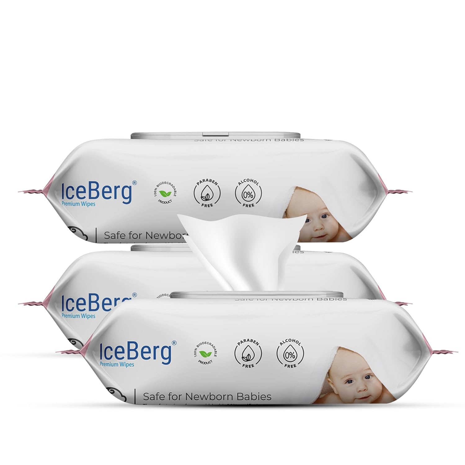 ICEBERG Natural Care Sensitive Baby Wipes, Unscented, Hypoallergenic, 99% Purified Water 80 Wipes in 1 pack (3)