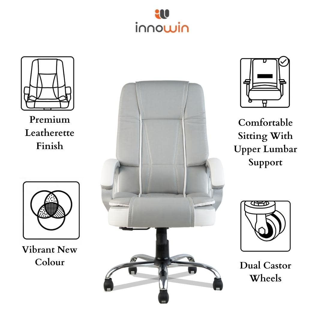 INNOWIN Venture Ergonomic Leatherette Executive High Back Revolving Desk Office Chair (Grey)| 3 Years Warranty