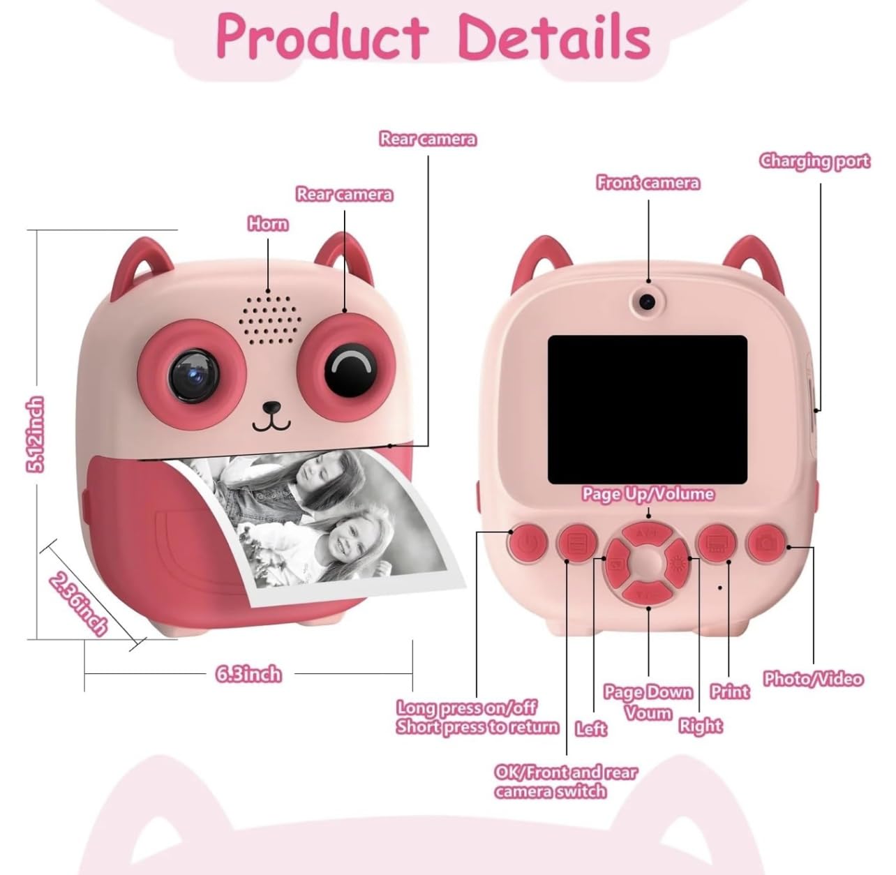 INSTANT PRINT CAMERA: Mini digital camera with instant print functionality allows kids to capture and print 20MP photos immediately, creating tangible memories they can share with friends and family