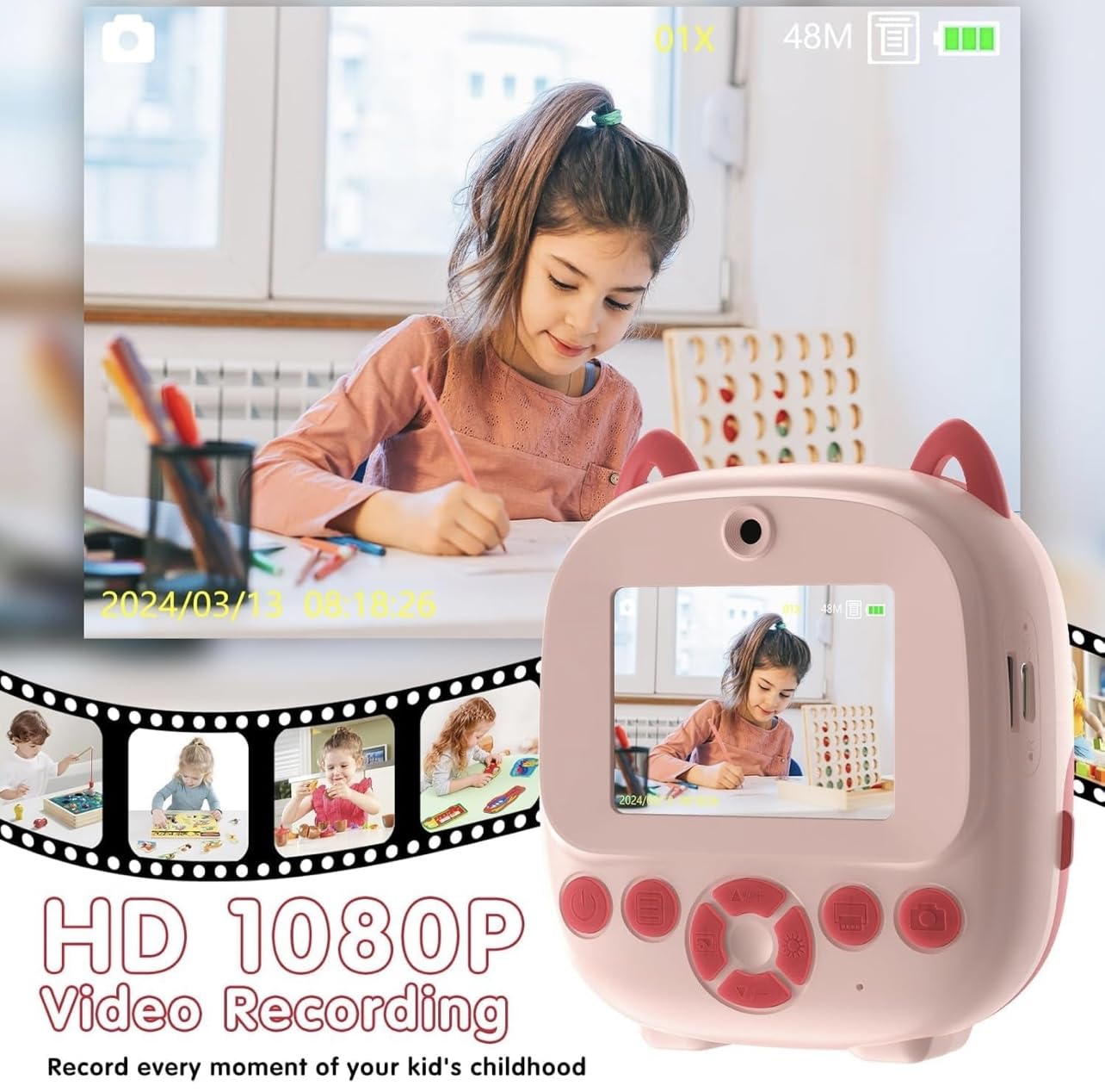 Instant Photo Camera for Kids with Print – Thermal Printer Toy with Non-Sticky Paper Rolls (1 in-Built), 1080p Video, Games, Rechargeable – Gift for Boys & Girls (Multicolour)