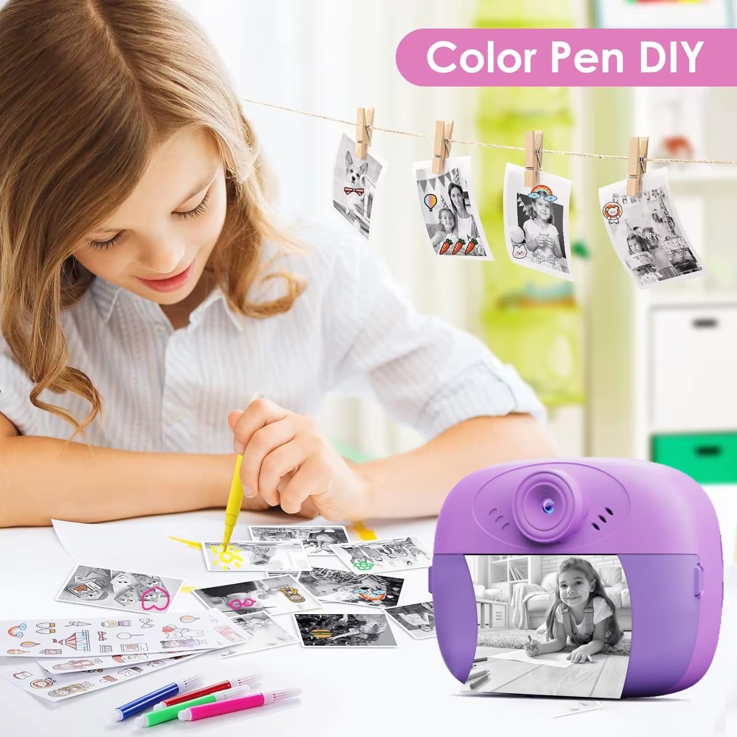 Instant Print Camera for Kids – 1080P HD with One Roll Photo Paper, for Ages 4-10 (Pink) | Mini Camera