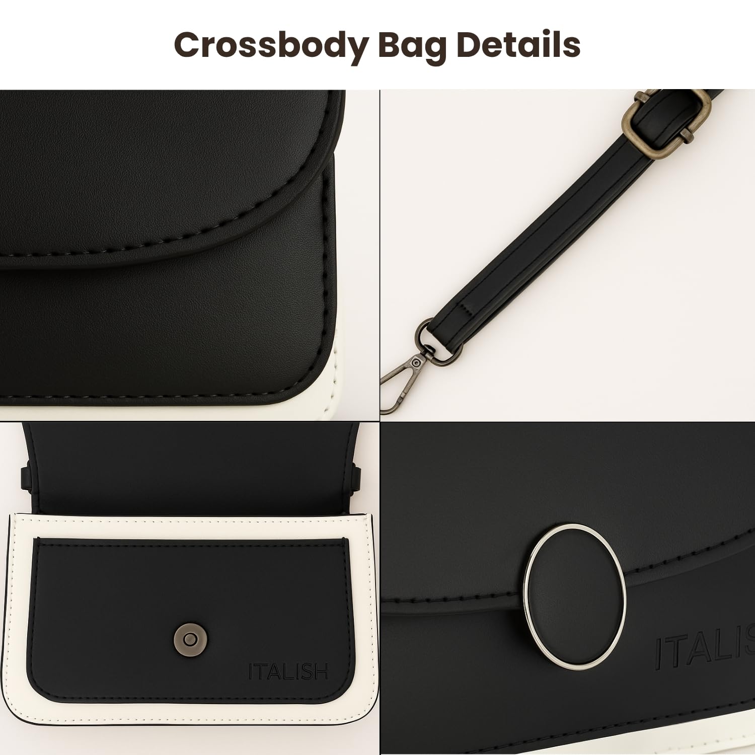ITALISH Leather Crossbody Bag with Adjustable Strap 23 x 18 x 7 cm